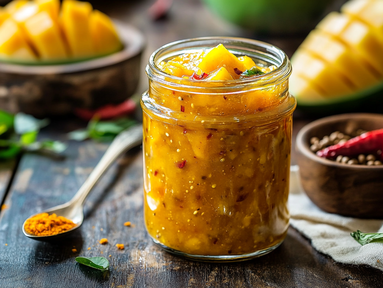 Spicy Mango Chutney is a culinary delight that epitomizes the perfect balance of sweet, spicy, and tangy flavors. A quintessential condiment with roots in Indian cuisine, chutneys have a storied tradition of adding vibrancy and complexity to meals. This particular recipe provides a modern twist, combining ripe tropical mangoes with an aromatic blend of spices to create a versatile accompaniment that will elevate a variety of dishes.