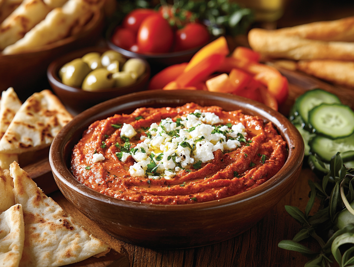 The importance of feta in Greek and Mediterranean cuisine goes beyond just flavor—it’s part of the region’s culinary identity. Its salty depth balances beautifully with sweeter ingredients, making it the perfect complement to the roasted red peppers in this spread.