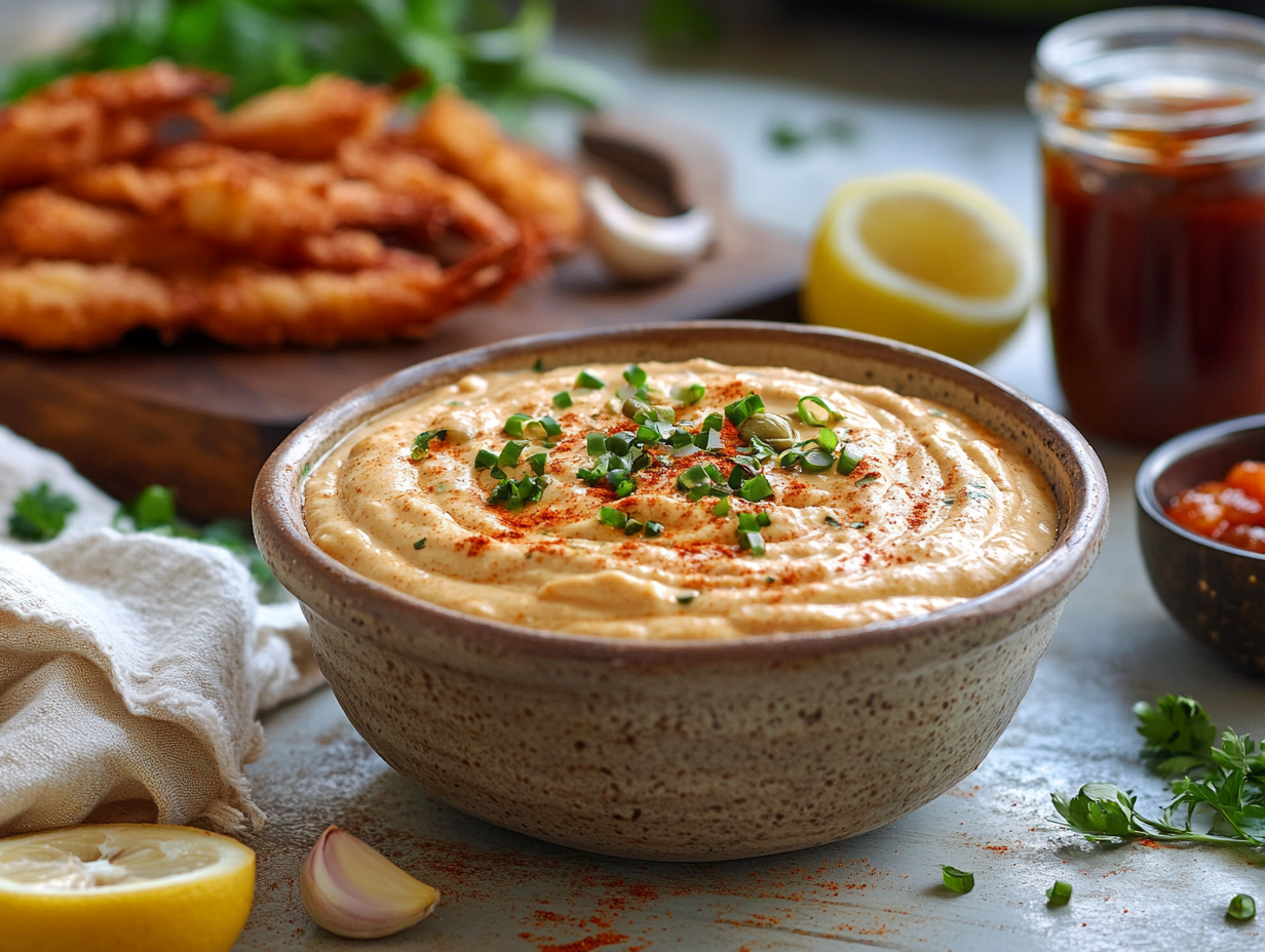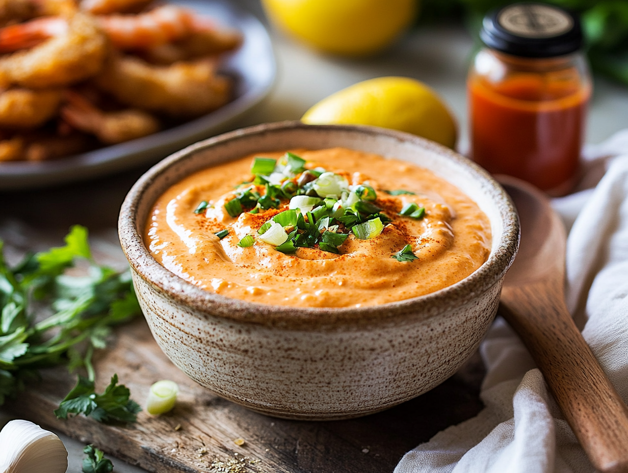 This version of Cajun Remoulade is a celebration of everything people love about Cajun cuisine: spice, tang, and a touch of sweetness. Ingredients like Dijon mustard and lemon juice bring acidity that balances the richness of mayonnaise, while the Cajun seasoning and hot sauce add that spicy, earthy kick synonymous with Louisiana. Highlights like chopped capers and sweet relish provide bursts of salty and sweet contrast, delivering a multi-layered flavor experience.