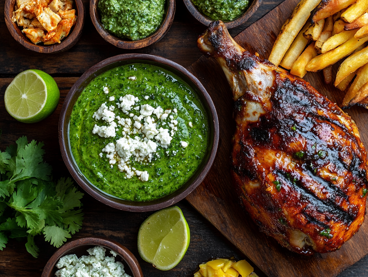 While Aji Verde is particularly associated with Pollo a la Brasa, which was popularized in the 1950s in Peru, its versatility has led it to become a sauce enjoyed beyond rotisserie chicken. You’ll often find this sauce drizzled over grilled steaks, roasted vegetables, or as a dipping sauce for fries and empanadas. In Peruvian restaurants around the world, Aji Verde has become a beloved condiment that diners reach for again and again.
