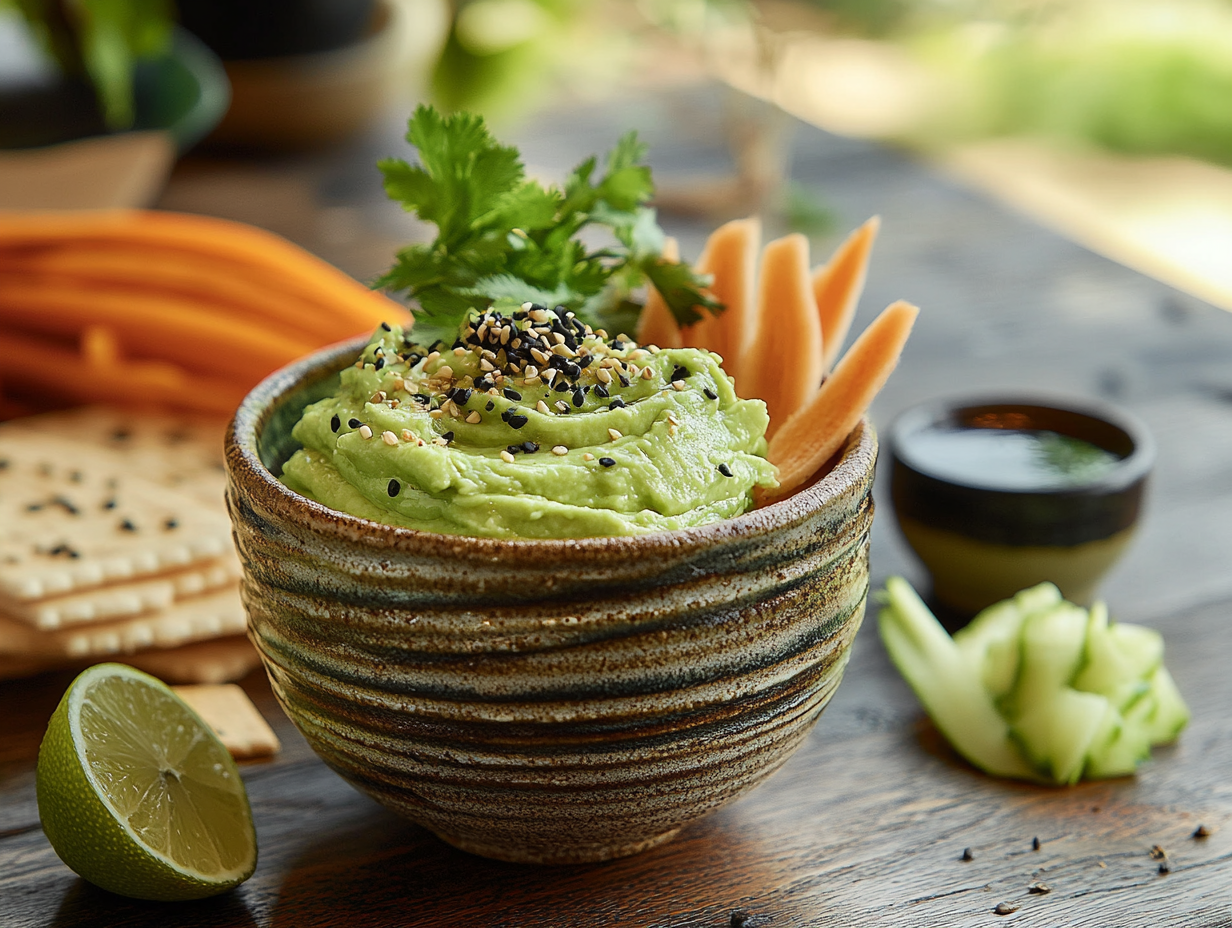 The Avocado Wasabi Spread is a delightful fusion that merges the creamy, rich texture of avocados with the bold, spicy kick of wasabi. This recipe is a nod to the versatility and creativity of modern fusion cuisines, where ingredients from diverse culinary traditions unite to create something entirely new. It draws influence from the light, refreshing, and umami-packed flavors iconic to Japanese cuisine, while incorporating a universally loved fruit—avocado—that has found its way into global kitchens thanks to its irresistible flavor and nutritional profile.