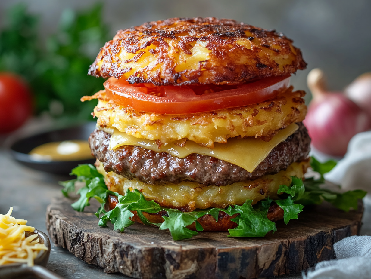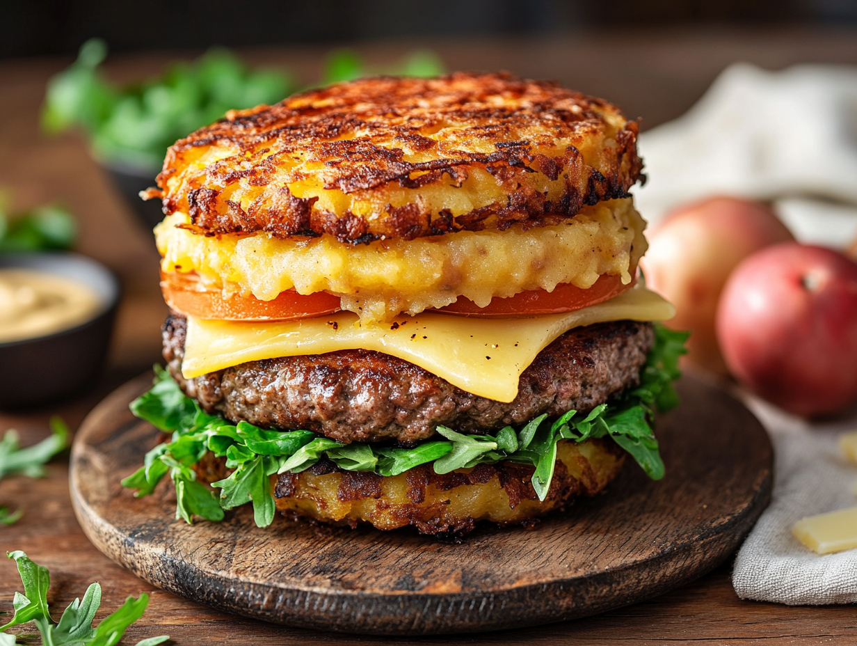 Switzerland is known for its hearty and well-crafted cuisine, often centered around high-quality dairy, potatoes, and meat. Rösti is especially significant in the canton of Bern but has gained nationwide appeal, often accompanying meals with cheese, eggs, or meats. The idea of using rösti as a bun replacement in a burger offers an exciting twist—combining the crispy texture of potatoes with the savory richness of a beef burger.