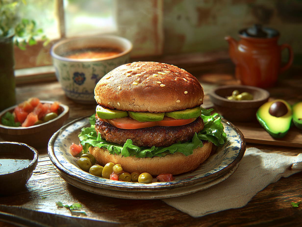 Salteñas are renowned for their masterful balance of sweet, savory, and occasionally spicy elements. Their fillings typically include meat (often chicken or beef) cooked in a rich, gelatinous broth along with a medley of ingredients such as cumin, paprika, olives, potatoes, raisins, and sometimes chili for a punch of heat. These signature flavors are at the heart of this recipe, but instead of being enveloped in the pastry pocket, they’re reconstructed within the warm embrace of a toasted burger bun. The idea is to retain the soul of the salteña while presenting it in a familiar and family-friendly format: the universally adored burger.