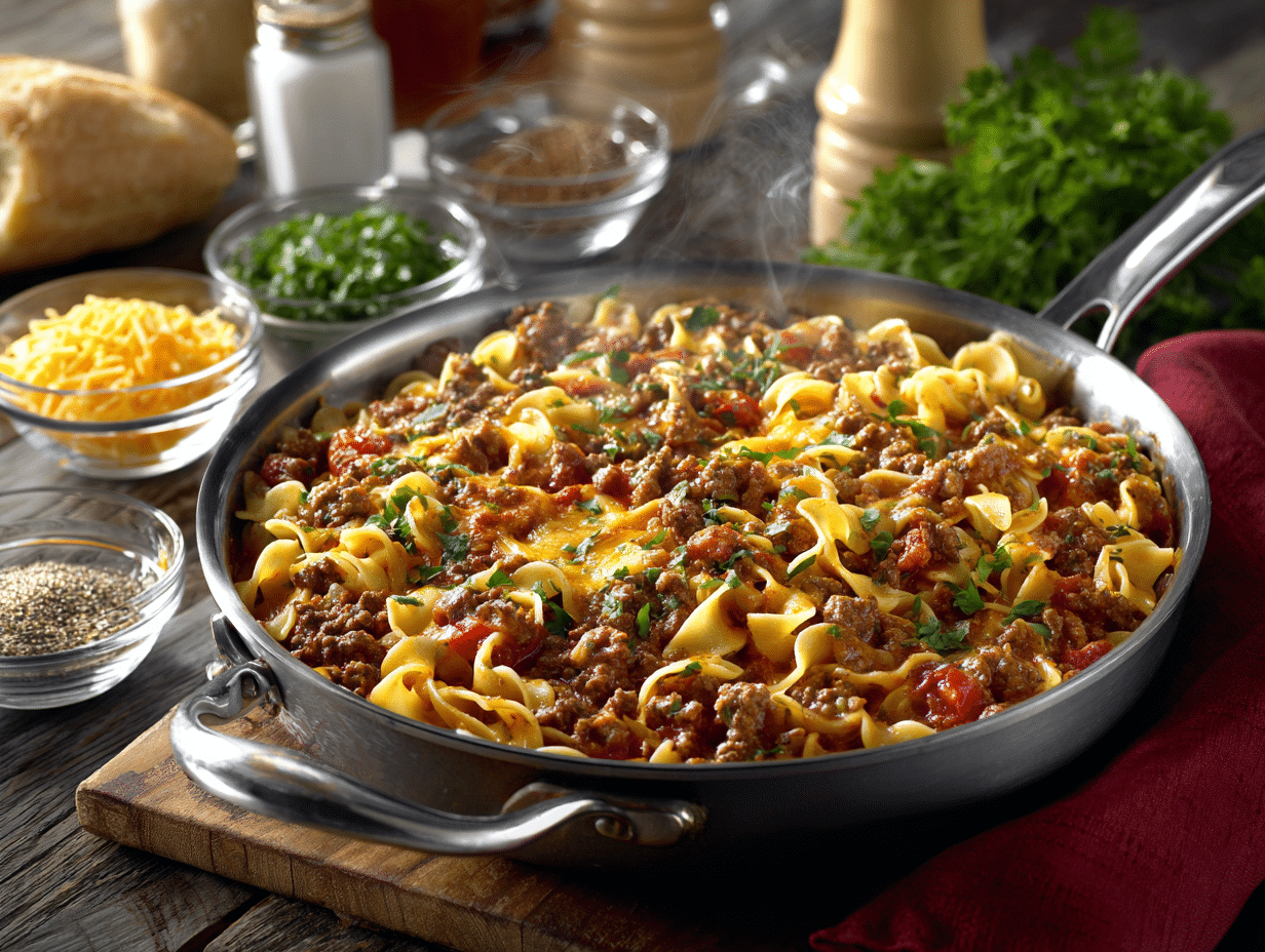 Few dishes capture the homey warmth and practical genius of American weeknight cooking quite like the Creamy Hamburger Noodle Skillet. This dish, housed somewhere between a classic casserole and a stovetop pasta bake, is a love letter to the ingenuity of mid-century American home cooks. From its humble roots in the heartland to its rebirth as a modern one-pan dinner solution, the Creamy Hamburger Noodle Skillet has evolved—but it has never lost its soul-satisfying magic.