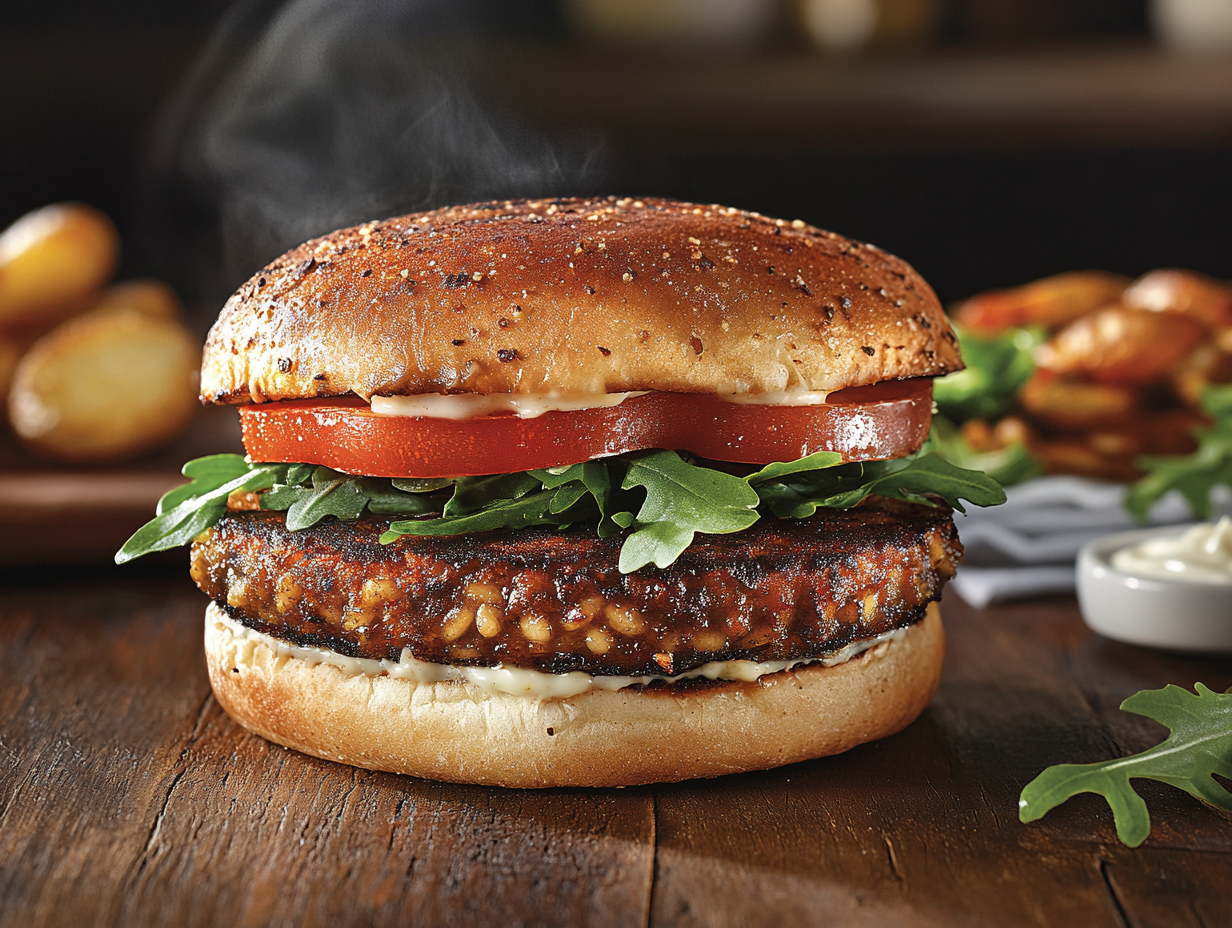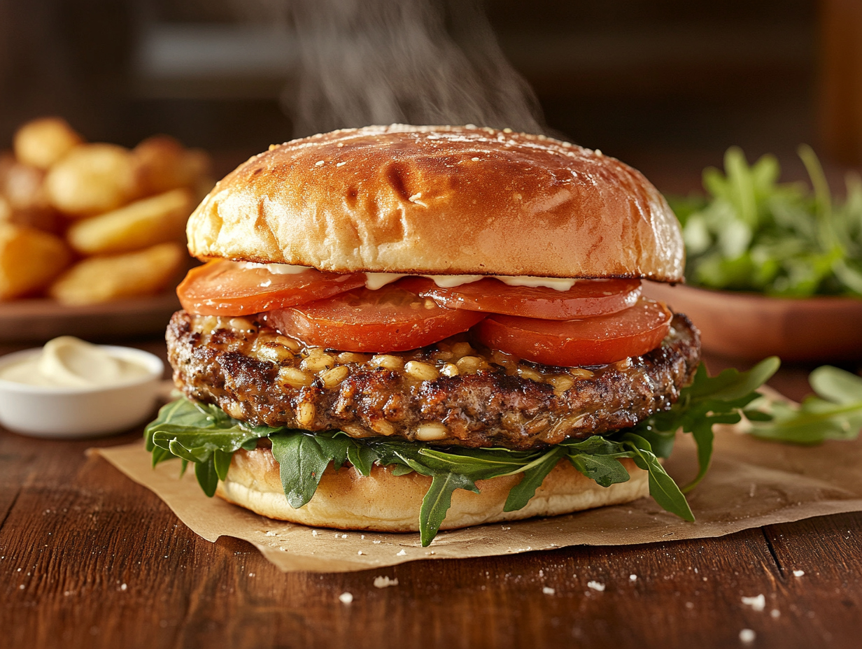 – Burger buns, heirloom tomatoes, arugula, and mayonnaise – These final ingredients complete the dish, adding freshness, creaminess, and subtle peppery notes.