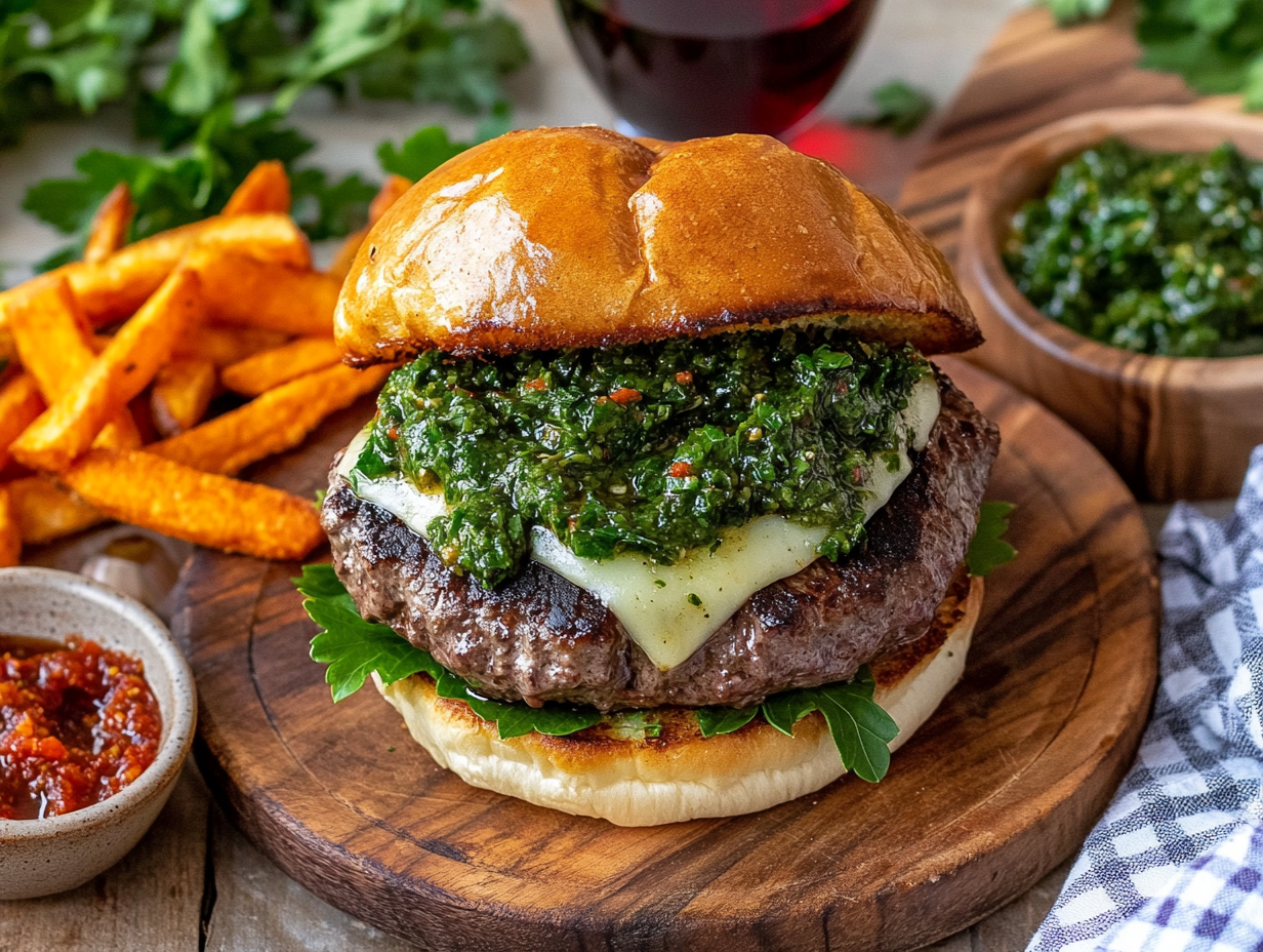 - Build the Burger: Lightly toast the brioche buns. On the bottom half of each bun, place the grilled patty with melted cheese. Spoon a generous amount of chimichurri sauce over the top and cap with the top bun.