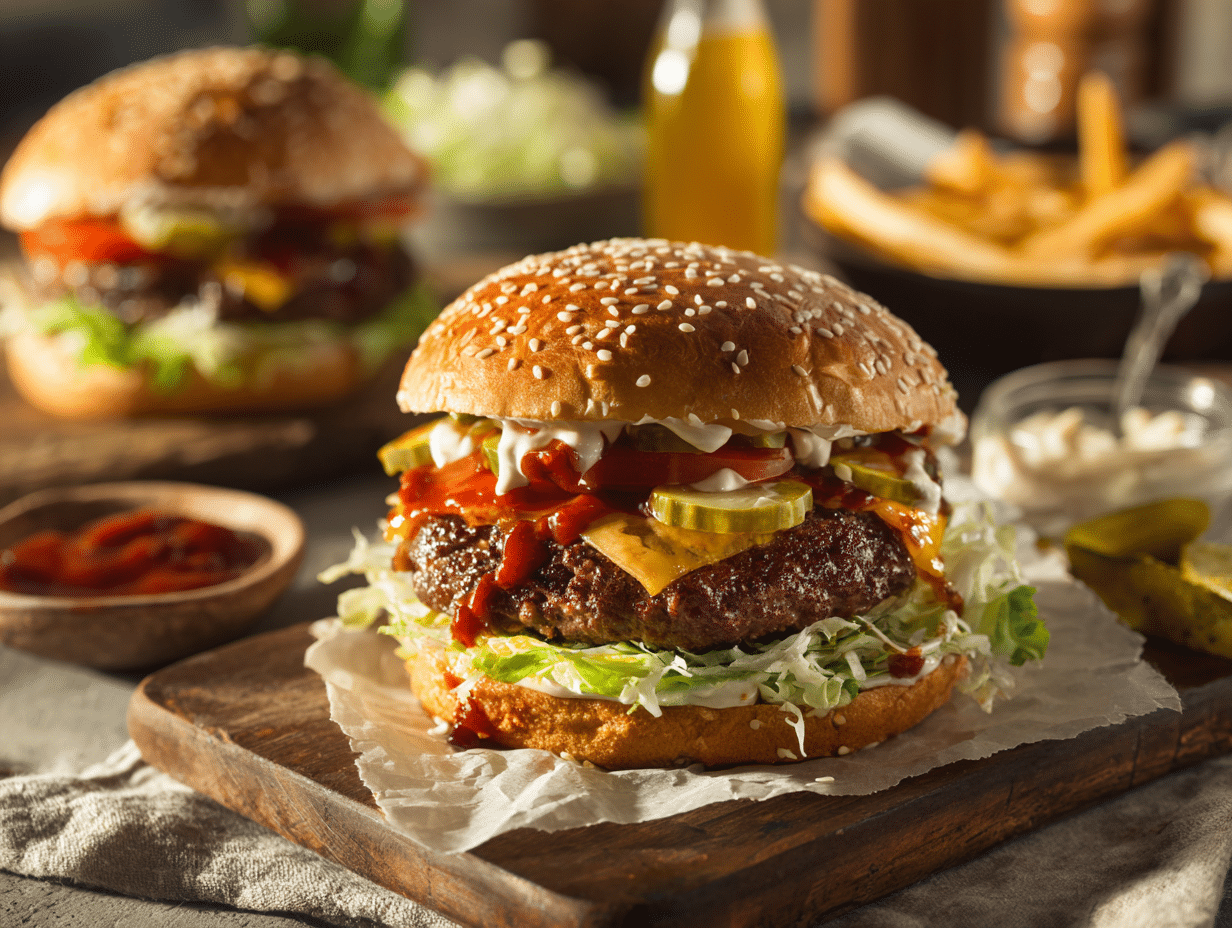 Inspired by the McDonald’s McFeast, a regional favorite in several countries, this version emphasizes quality beef, careful searing, and a balanced tangy-creamy sauce. It captures the spirit of fast-food nostalgia through a chef’s lens—elevating texture and flavor without losing the fun.Optional Advanced Instructions: