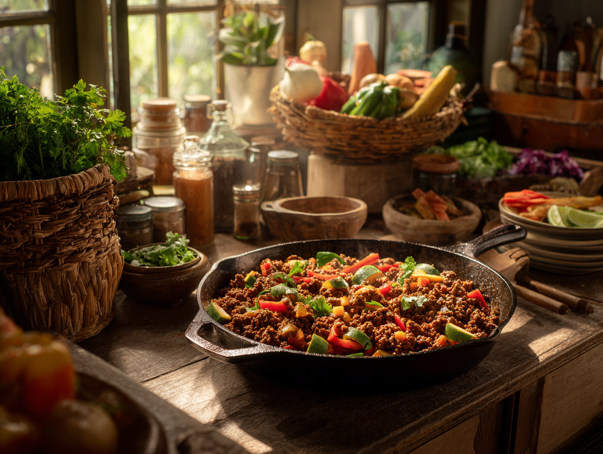 This interplay of tradition and global inspiration is no accident. In my experience as a chef and home cook, some of the best meals are born from cultural “blending”—using familiar formats to explore new or complementary flavors. In this case, a simple hamburger skillet becomes something that tastes vibrant, health-forward, and just a little bit exotic—without straying too far from our culinary comfort zones.