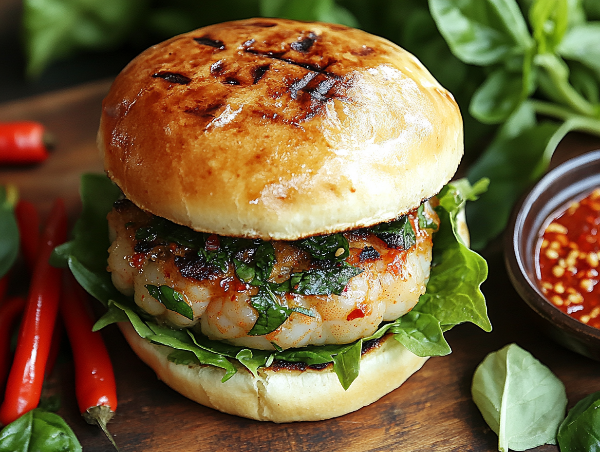 Ultimately, the Thai Basil and Lemongrass Shrimp Burger is a reflection of the interplay between a Western concept of a burger and the timeless techniques of Thai cooking. The fresh shrimp, aromatic herbs, and balanced spices transform a familiar meal into something brimming with originality. It also offers a springboard for your culinary imagination—after all, Thai cooking is all about harmonious contrasts, and that’s what makes every bite pop with life. Whether you’re a fan of adventurous food, a busy cook seeking a quick meal with maximum flavor, or simply someone who appreciates the synergy of aromatic ingredients, this shrimp burger is sure to leave a lasting impression. Perhaps you’ll even find that the aroma of lemongrass and the punch of Thai basil inspire you to bring more of Thailand’s spirited flavors into your kitchen.