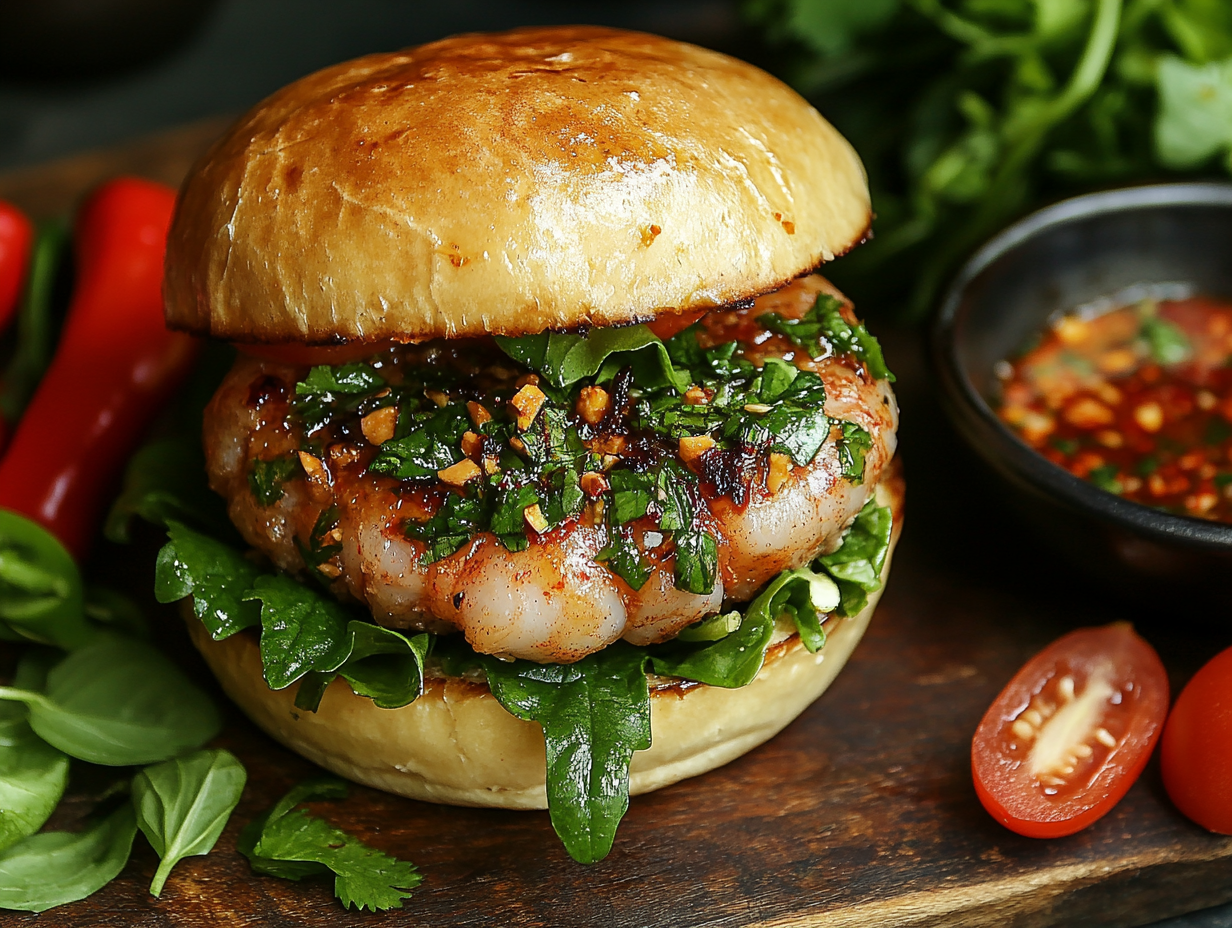 Shrimp itself is an irresistible choice for these burgers. It cooks quickly and stays tender with minimal preparation, which makes it a chef’s favorite for weekday meals that don’t sacrifice flavor. In Thailand, seafood reigns supreme in many dishes because of the coastal and river-rich geography. Shrimp is especially suited to the balancing act of salty, sour, sweet, and spicy that Thai food is celebrated for. In this burger, the shrimp is gently pulsed (or meticulously chopped) to preserve chunks of texture, ensuring that each mouthful is juicy rather than over-processed. This approach keeps the final patty light and tender, yet sturdy enough to hold its shape once cooked.