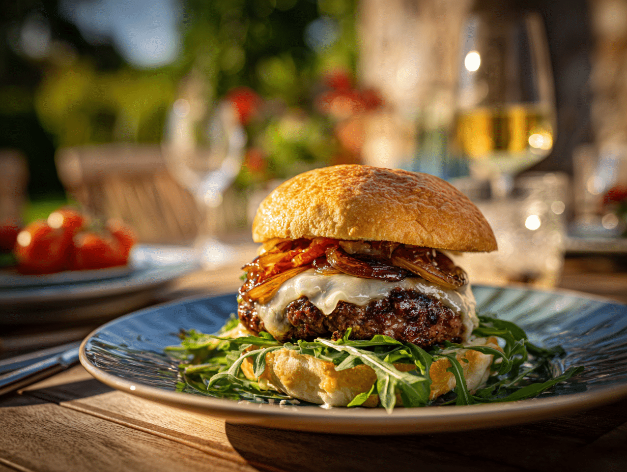 Though simple to prepare at home, this burger offers restaurant-level sophistication. And its impact can be magnified by presentation: served with a crisp rosé or a cold craft beer, paired with truffle fries or a bright salad—it becomes more than dinner, it becomes dining.