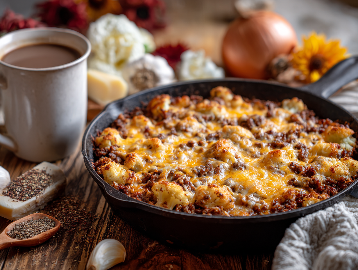 Nutritionally, the Keto Cheesy Hamburger Meat Skillet checks all the right boxes for those maintaining low-carb or ketogenic habits. Thanks to its ample serving of healthy fats from the beef, cheese, and cream, generous protein from the beef, and fiber and micronutrients from cauliflower, it’s a truly balanced keto meal in one dish. And best of all? It tastes indulgent — proof that eating well doesn’t have to mean sacrificing flavor.