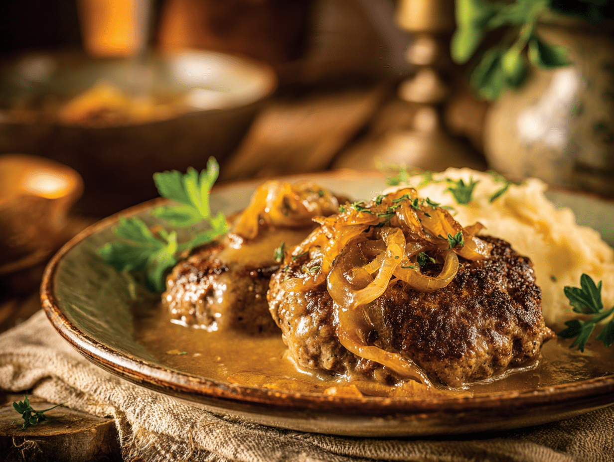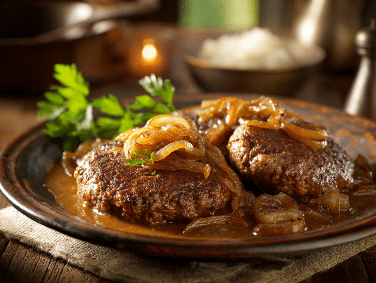 The origins of dishes like this go back to the early 1900s, when minced or ground beef was becoming a common and economical way to feed a family. The dish gained traction in the United States as a way to recreate the hearty, satisfying experience of a steak dinner without the cost of high-end cuts. Its popularity expanded through the Great Depression and post-war eras, especially thanks to diners and TV dinners that featured Salisbury steak and brown gravy as quintessential comfort food meals. Today’s home cooks seek to recreate that warmth but with fresher flavors, higher-quality ingredients, and a deeper appreciation for the cooking process.