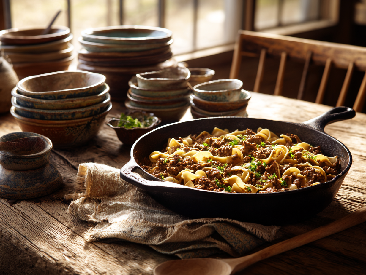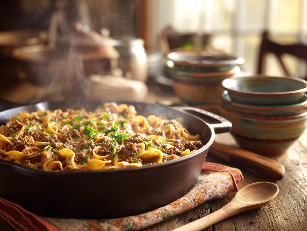In today’s culinary world of ever-expanding globalization and gourmet reinvention, there’s something uniquely satisfying about returning to the simplicity of a skillet—the sizzle of butter, the smell of browning beef, and the cozy comfort of noodles blanketed in a luscious sauce. This dish is a testament to those simple joys, reimagined for a new home-era of cooks who are looking for more than just sustenance—they’re searching for comfort, connection, and a delicious reminder that sometimes, the old ways still serve us best.