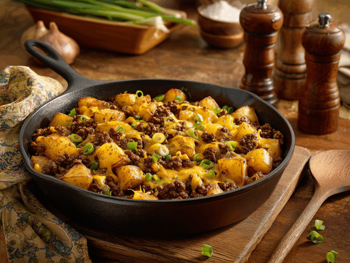 Hamburger meat, or ground beef, is one of the most versatile and widely used ingredients in American cooking. It’s economical, easy to prepare, and hearty. It can be transformed into anything from burgers and chili to casseroles and taco fillings. But one of the lesser-known yet equally satisfying preparations is the humble skillet hash—a one-pan mixture of browned beef, tender potatoes, aromatics like onions and garlic, warming spices, and a touch of cheese.