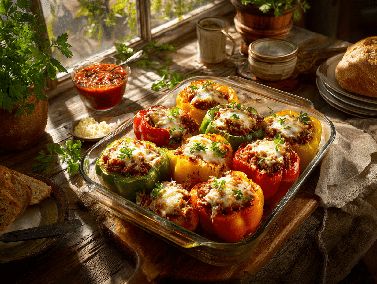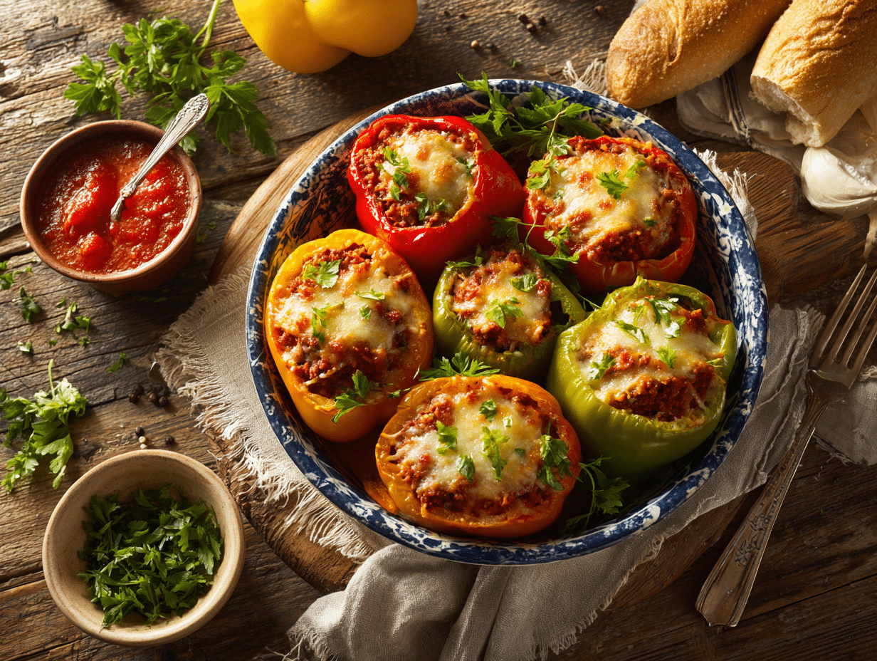 There’s something truly timeless about stuffed bell peppers. Whether you’re cooking from a family recipe scribbled onto a notecard or following a tutorial online, this dish has found its way into countless kitchens around the world. Our version — Stuffed Bell Peppers with Savory Hamburger Filling — is a heartfelt nod to both nostalgic Midwestern comfort food and vibrant Mediterranean influences. But beyond the sizzling skillet and bubbling cheese lies a story bridging family tradition, culinary practicality, and the joy of wholesome comfort food.