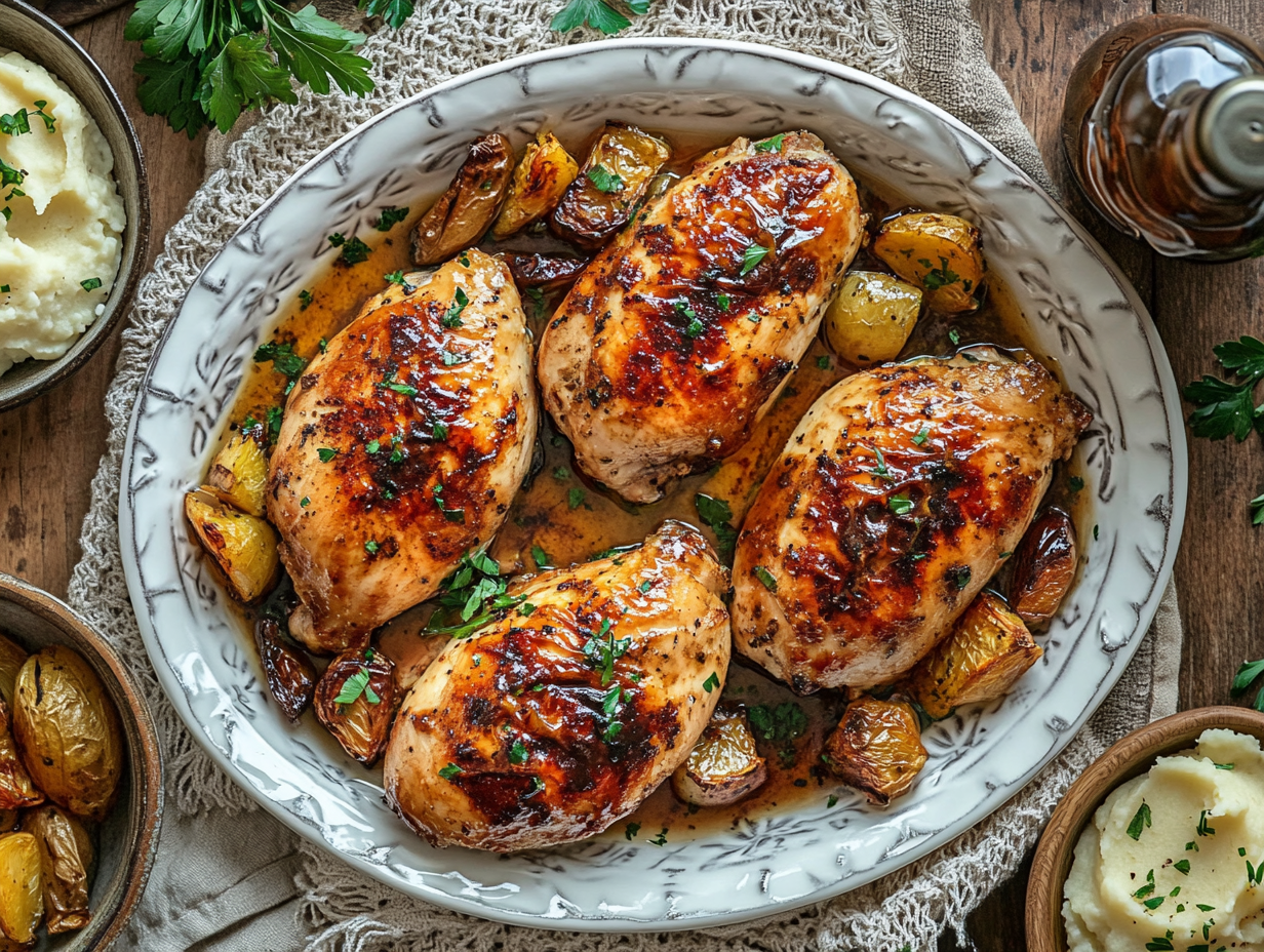Ultimately, “Seared Chicken with Spanish Sweet Sherry Glaze” represents a fusion of venerable Spanish winemaking heritage and versatile contemporary cooking. It celebrates the luscious, almost candied nature of Sherry without losing sight of the savory foundation provided by the chicken and aromatic shallots. The skillful reduction highlights how an everyday protein can be transformed by just one or two key elements. Whether you’re already an enthusiast of Spanish Sherry or sampling it for the first time, this dish will introduce you to flavors reminiscent of the vineyards of Jerez, reminding you of Spain’s longstanding romance with wine and the delight it can bring to even the simplest of meals.