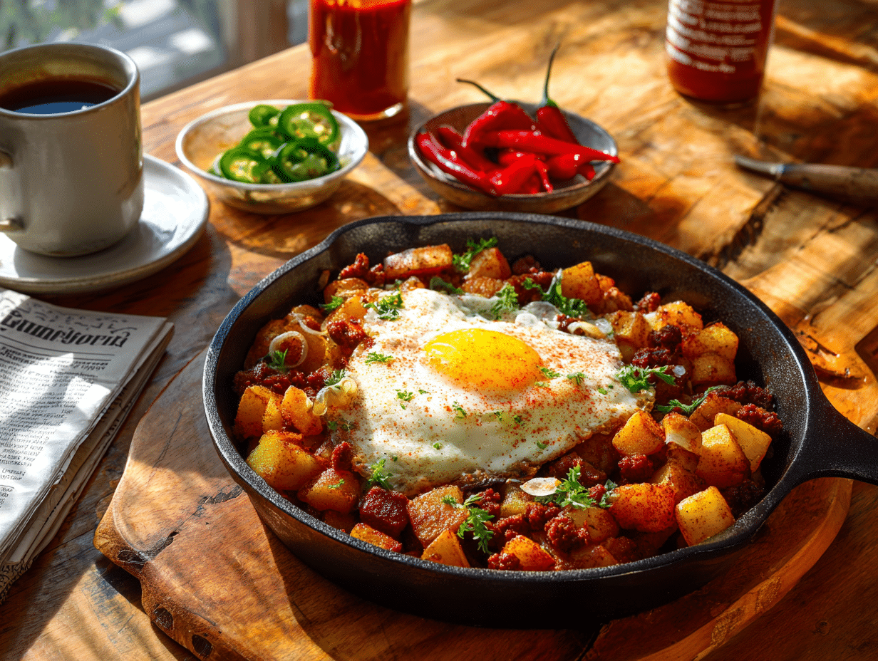 This dish is also extremely customizable. You might add chopped bell peppers for sweetness, diced jalapeños for heat, or swap the russet potatoes for sweet potatoes for an added layer of earthy sweetness. The fried egg on top provides richness and its yolk acts as a natural sauce, coating the rest of the ingredients as it breaks. For those who prefer their eggs poached or scrambled, the recipe welcomes that variation too.