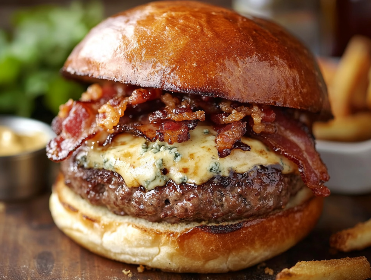 The British Stilton and Bacon Burger isn’t just an ordinary burger—it is an experience in flavor balance and texture. The juicy beef, tangy Stilton, crispy bacon, and buttery brioche come together to create a burger that is both indulgent and easy to make. Whether enjoyed at a summer barbecue or as a comforting weekend treat, this burger pays homage to beloved British ingredients in a way that feels both classic and modern.