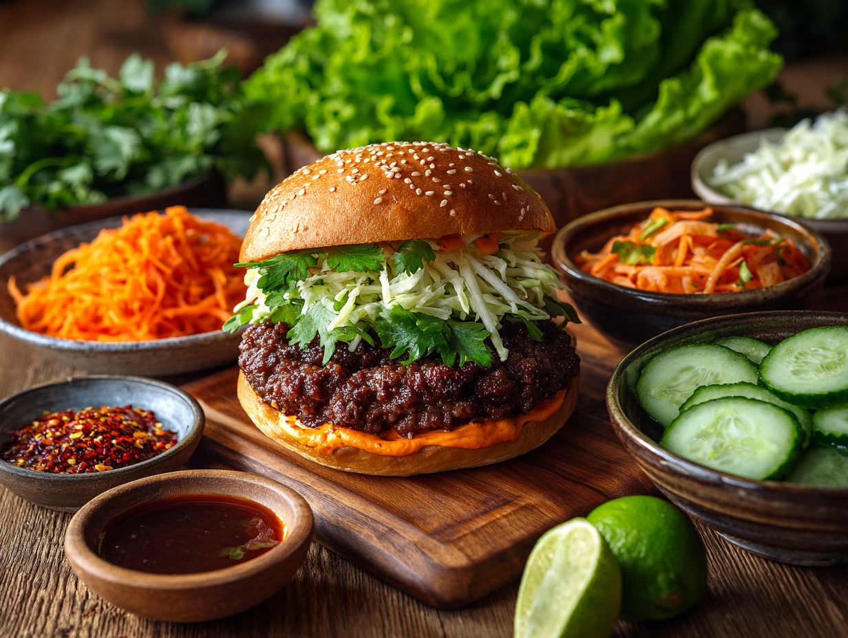 The Korean Bulgogi Burger with Gochujang Aioli is more than just a fusion of global flavors—it’s a vibrant culinary mashup that bridges Korean tradition with Western comfort food. At its heart, this burger celebrates bulgogi, one of Korea’s most beloved dishes, reimagined in the form of a handheld, indulgent meal that combines the best of both cultural worlds.