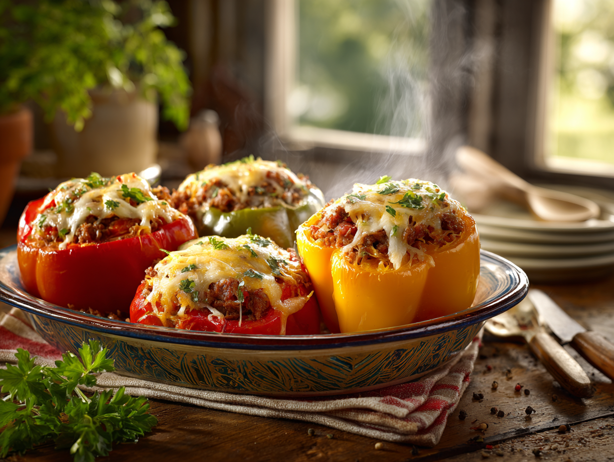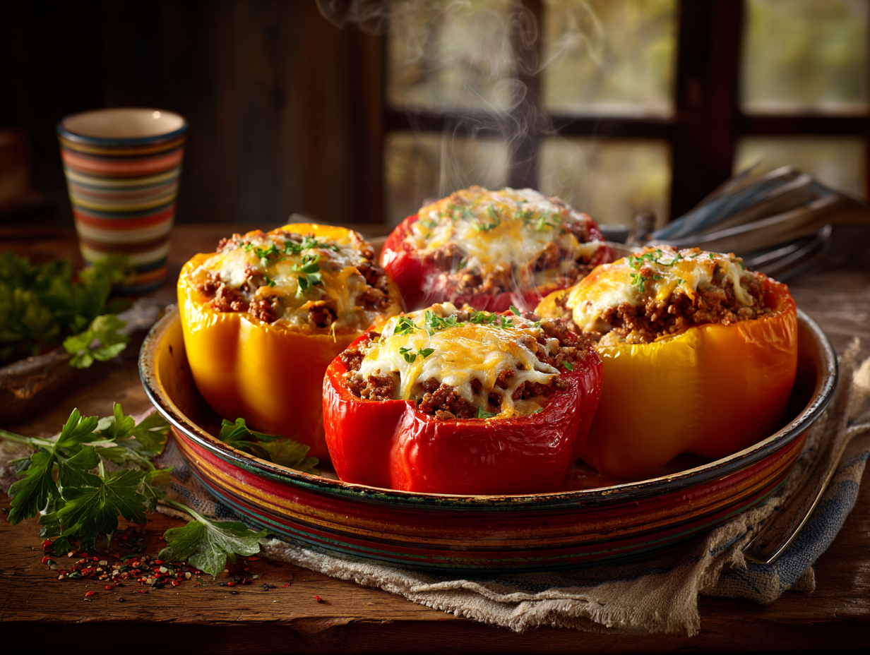 Savory Beef & Cheddar Stuffed Bell Peppers