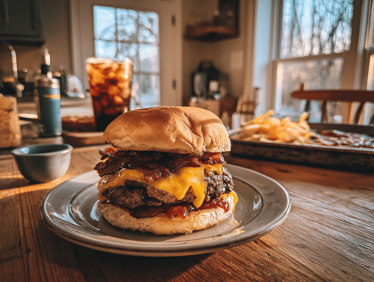 - Doneness cues: Look for dark, lacy edges on the patties, glossy melted cheese, and bacon that snaps without shattering.