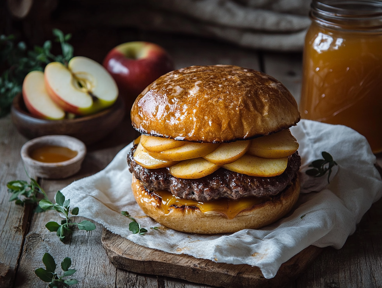 The Dutch Gouda and Caramelized Apple Burger is a creation that embodies a perfect harmony of contrasting flavors and textures in every bite. This recipe is a departure from the ordinary burger, offering a sophisticated spin that marries the creamy richness of Gouda cheese with the sweet, tender tang of caramelized apples. The resulting dish is an indulgent yet balanced combination that celebrates Dutch culinary heritage with a playful modern twist.