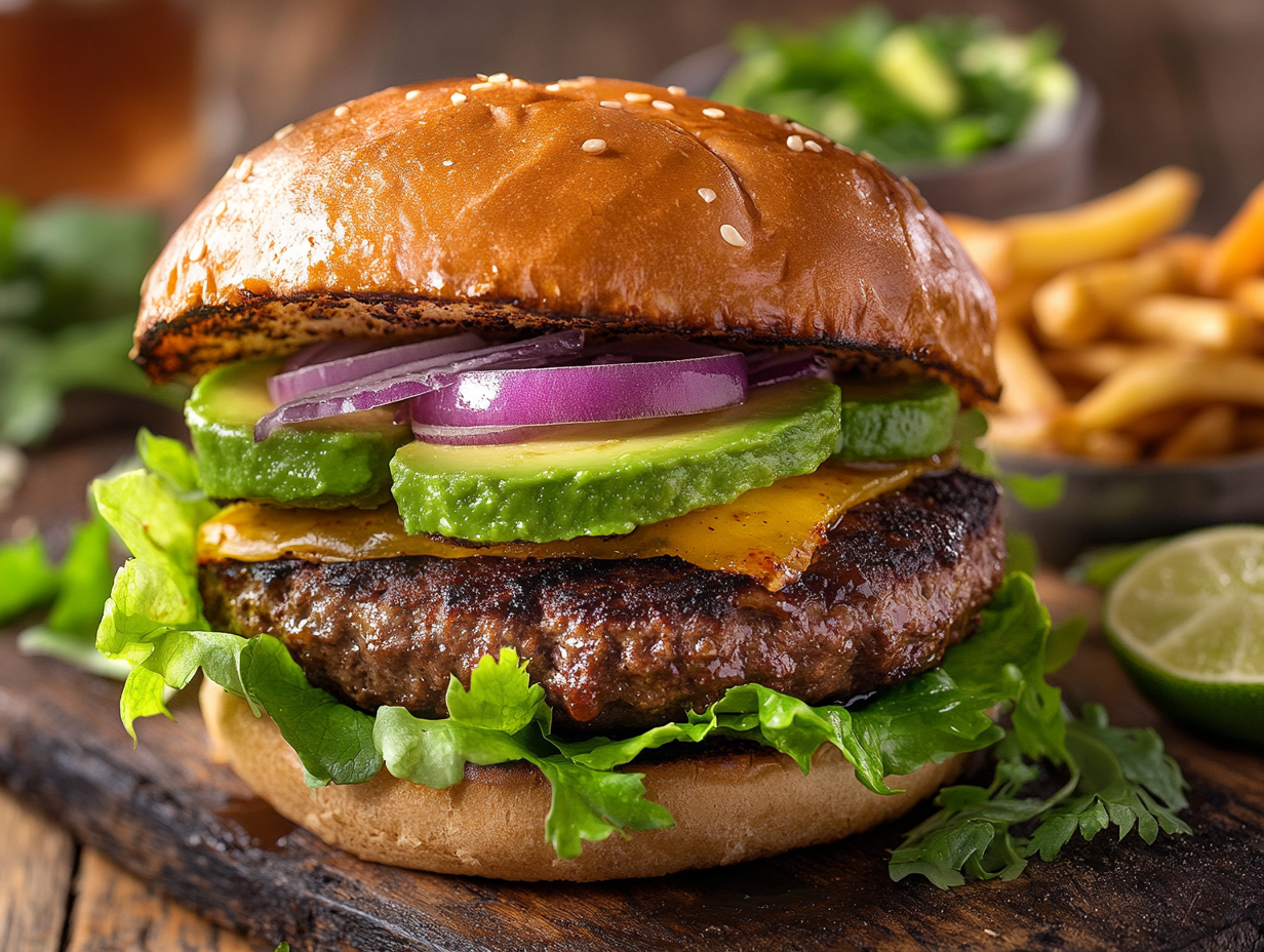 The Spicy Peruvian Aji Burger harmoniously blends the vibrant and bold flavors of Peruvian cuisine with the comfort of a classic American burger. At the heart of this culinary creation is the aji amarillo pepper, a defining ingredient in Peruvian gastronomy. Known for its bright yellow-orange hue and moderate heat, aji amarillo adds not only a distinct spicy kick but also a fruity and slightly tangy undertone, giving this burger a unique profile that stands out from traditional recipes.
