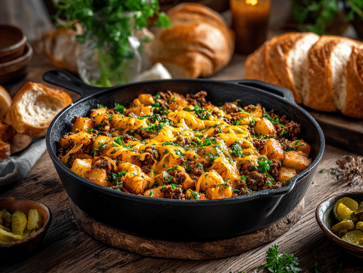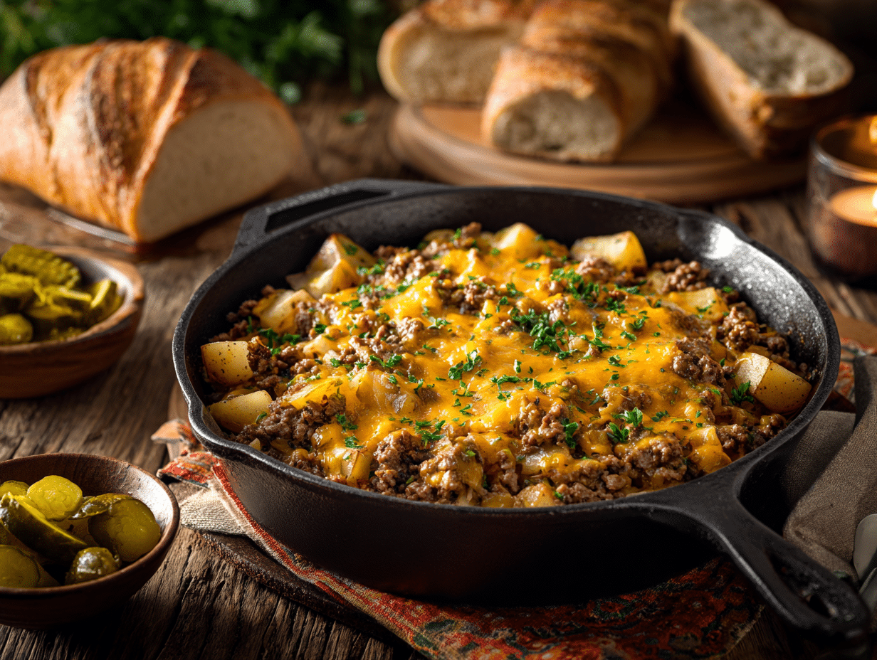 Skillet meals are beloved for a reason: they’re efficient, easy to cook, and even easier to clean up. This recipe is tailored for a 12-inch cast iron or nonstick skillet—large enough to hold everything, but shallow enough to allow excess moisture to evaporate, which aids in caramelization and browning. Each stage of cooking builds upon the previous one without washing out flavors, and by the end, every bite is infused with the richness of rendered beef fat, the sweetness of onions, and the smoky warmth of paprika.