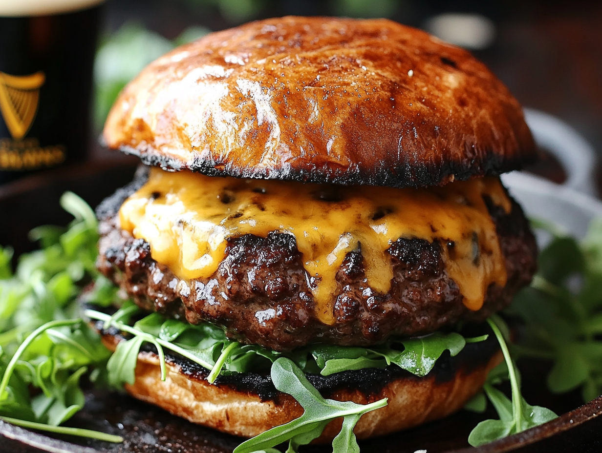 Ultimately, the “Irish Guinness Beef Burger” is more than just a dish—it’s a “celebration of Ireland’s love for high-quality ingredients and bold flavors”. Whether served for “St. Patrick’s Day, game night, or an upscale gourmet burger meal”, this recipe brings a piece of Ireland into every kitchen. So, grab a pint of Guinness, fire up the grill, and enjoy a taste of Irish tradition in every delicious bite!