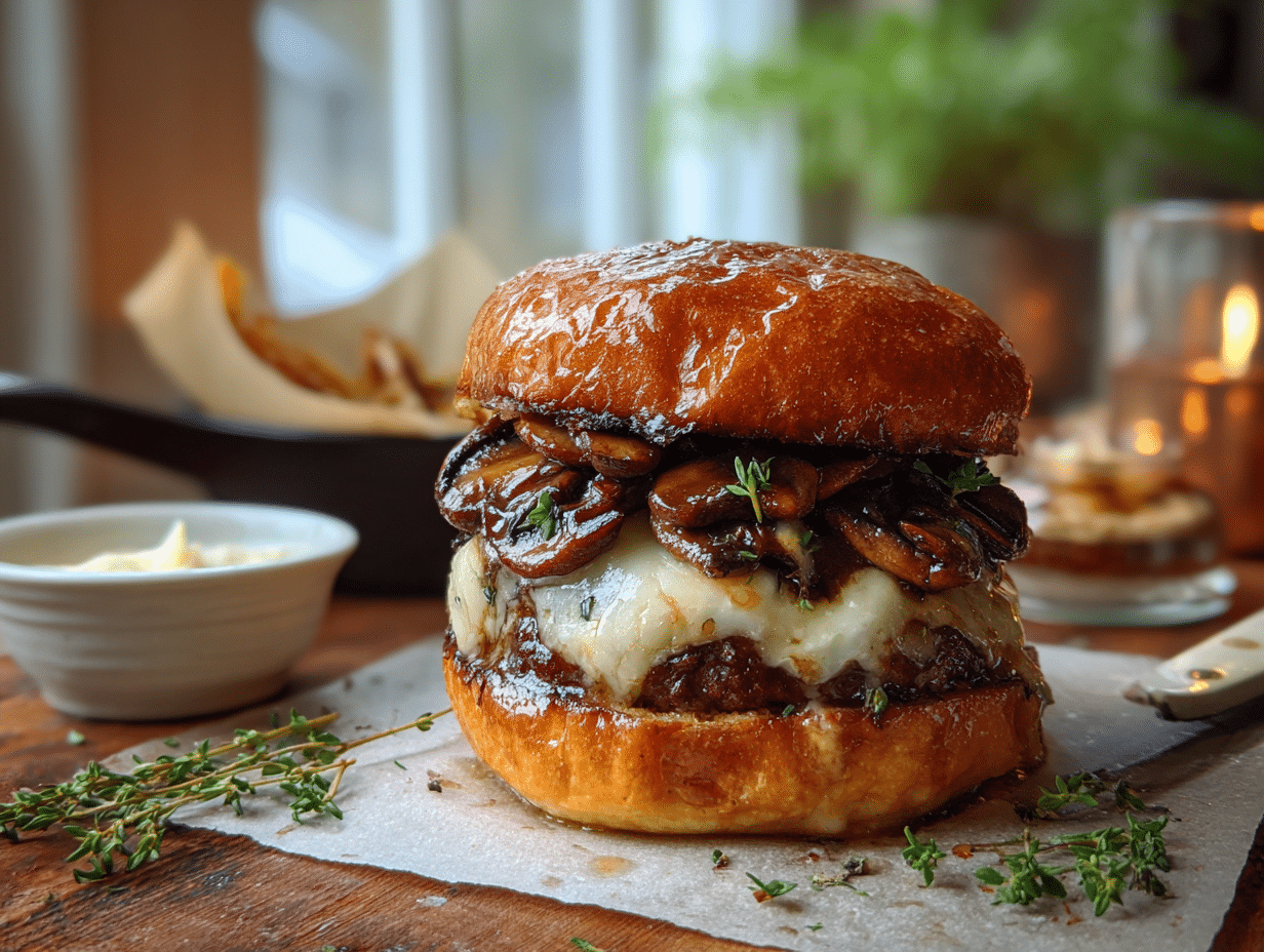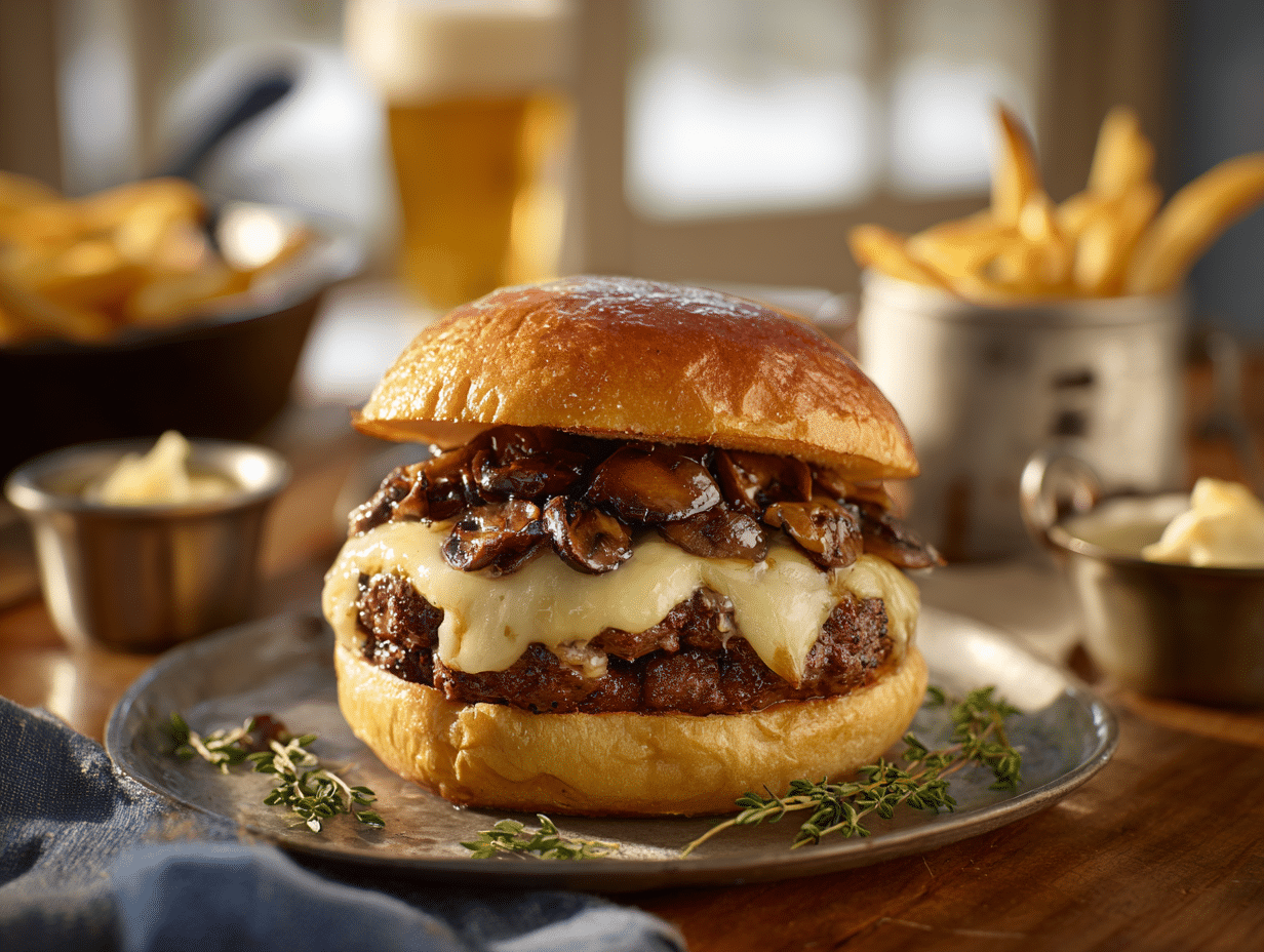 - Substitutions: Use baby bella mushrooms, or mix in a few shiitakes for extra umami. Swiss can be swapped for Emmental or Gruyère. For a plant-forward twist, use a sturdy plant-based patty and vegetable broth.