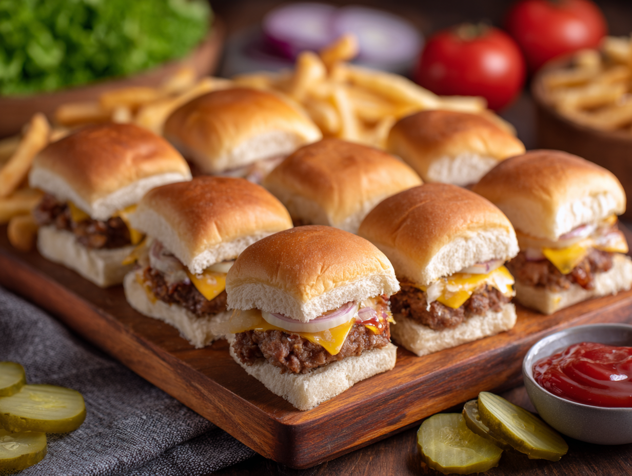 Today’s recipe offers the joy of mastering a legendary burger, bringing its timeless taste and texture into your own home. Soft buns, molten cheese, onion-steamed beef, and crunchy pickles—it’s more than just a mini burger. It’s a bite of Americana, wrapped in a square shape and steeped in culinary legacy.