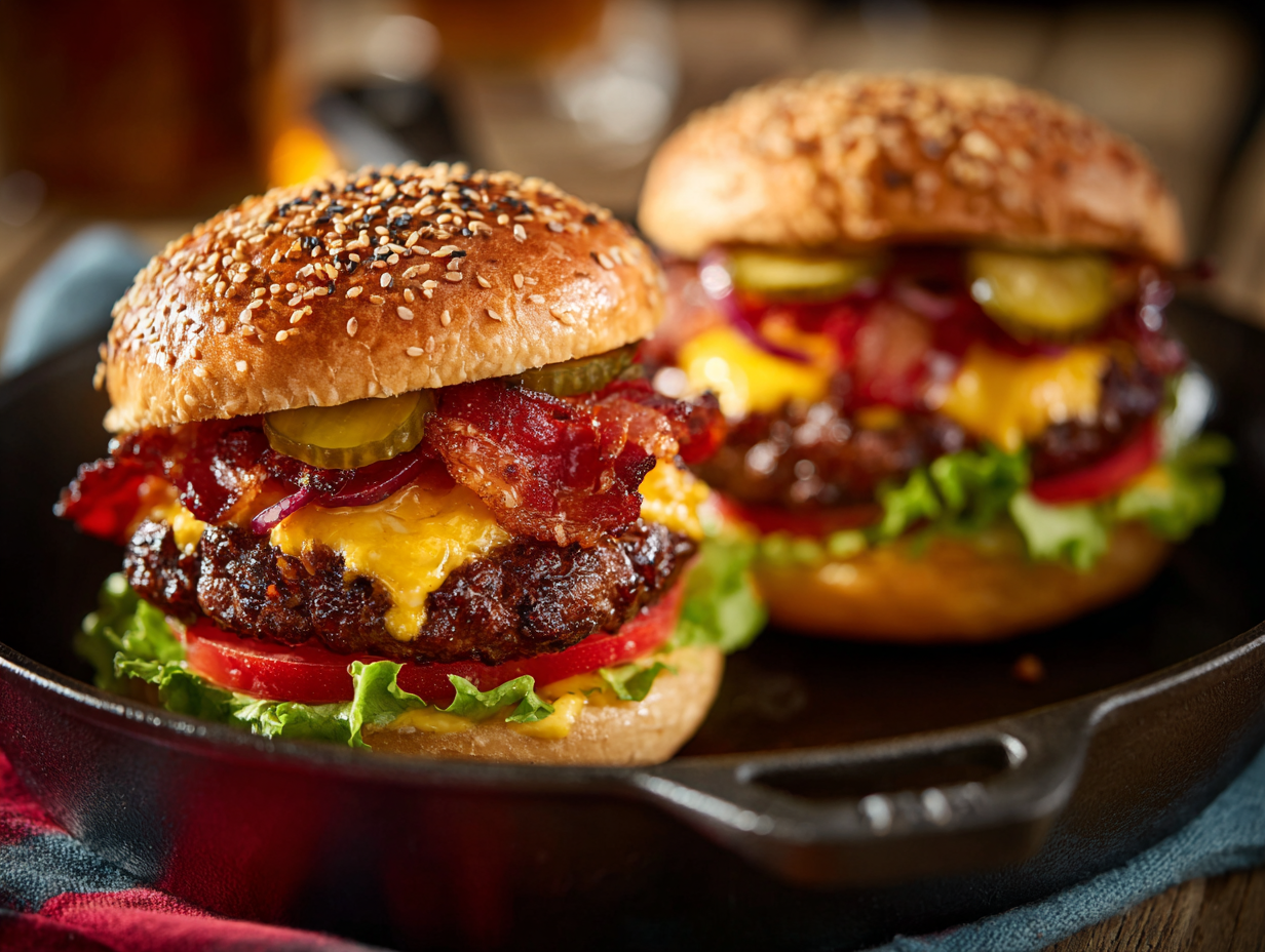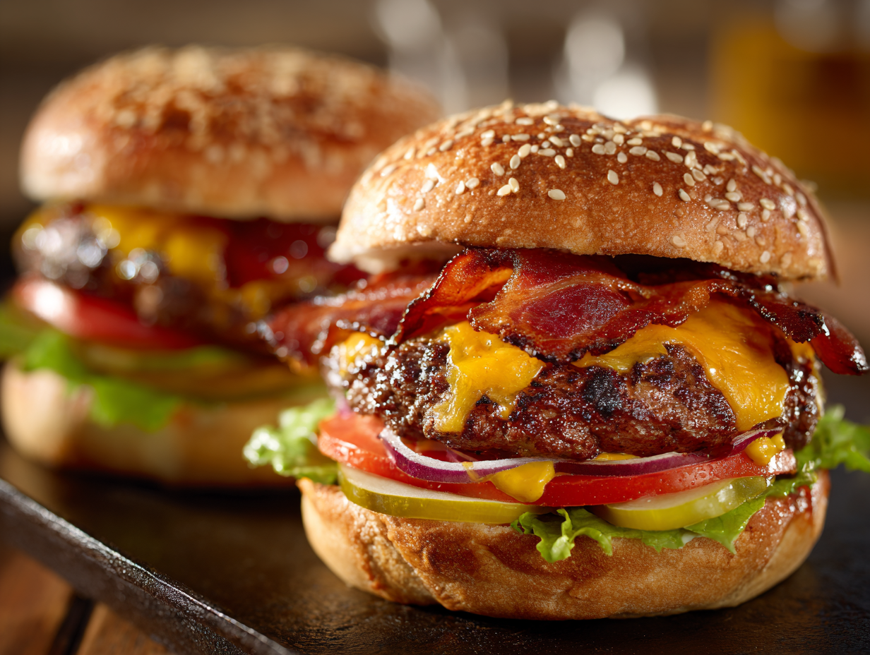Then there’s the bacon, an essential component. Cooked until crispy but not overdone, the bacon offers a smoky flavor and crunch that slices through the soft bun and molten cheese like a savory exclamation point. In this version, we recommend using thick-cut smoked bacon, which holds up well and adds a backyard grillhouse touch.