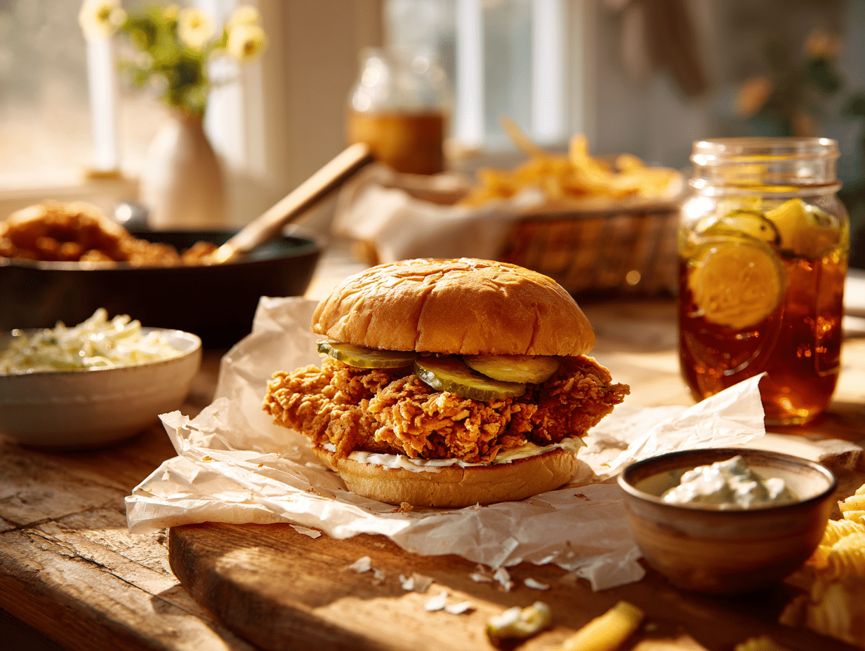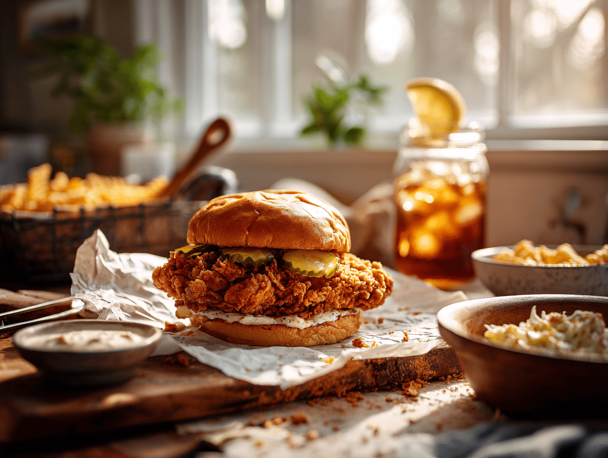 - Plating: Present in a parchment-lined basket or on a warm plate. Angle-cut the sandwich to showcase the juicy interior and craggy crust.