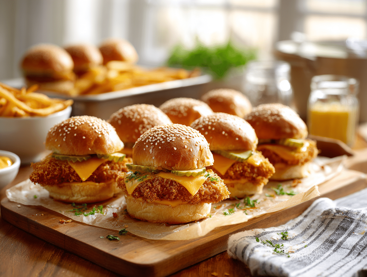 The careful temperature control during frying (maintaining 350°F) ensures the breading crisps before the lean chicken overcooks. The brief rest after baking allows moisture to redistribute, preventing the sliders from falling apart when served—a small detail that makes a significant difference in the eating experience.