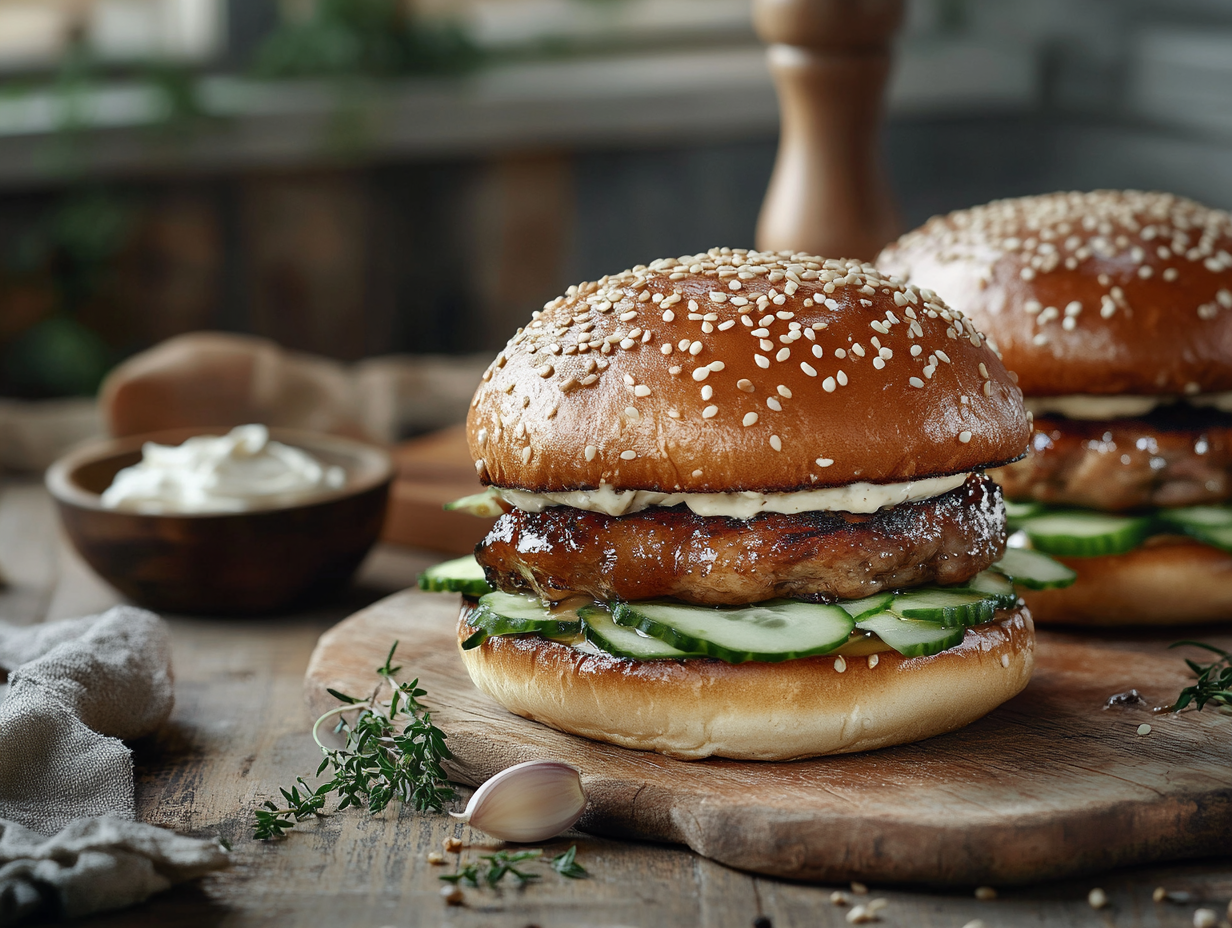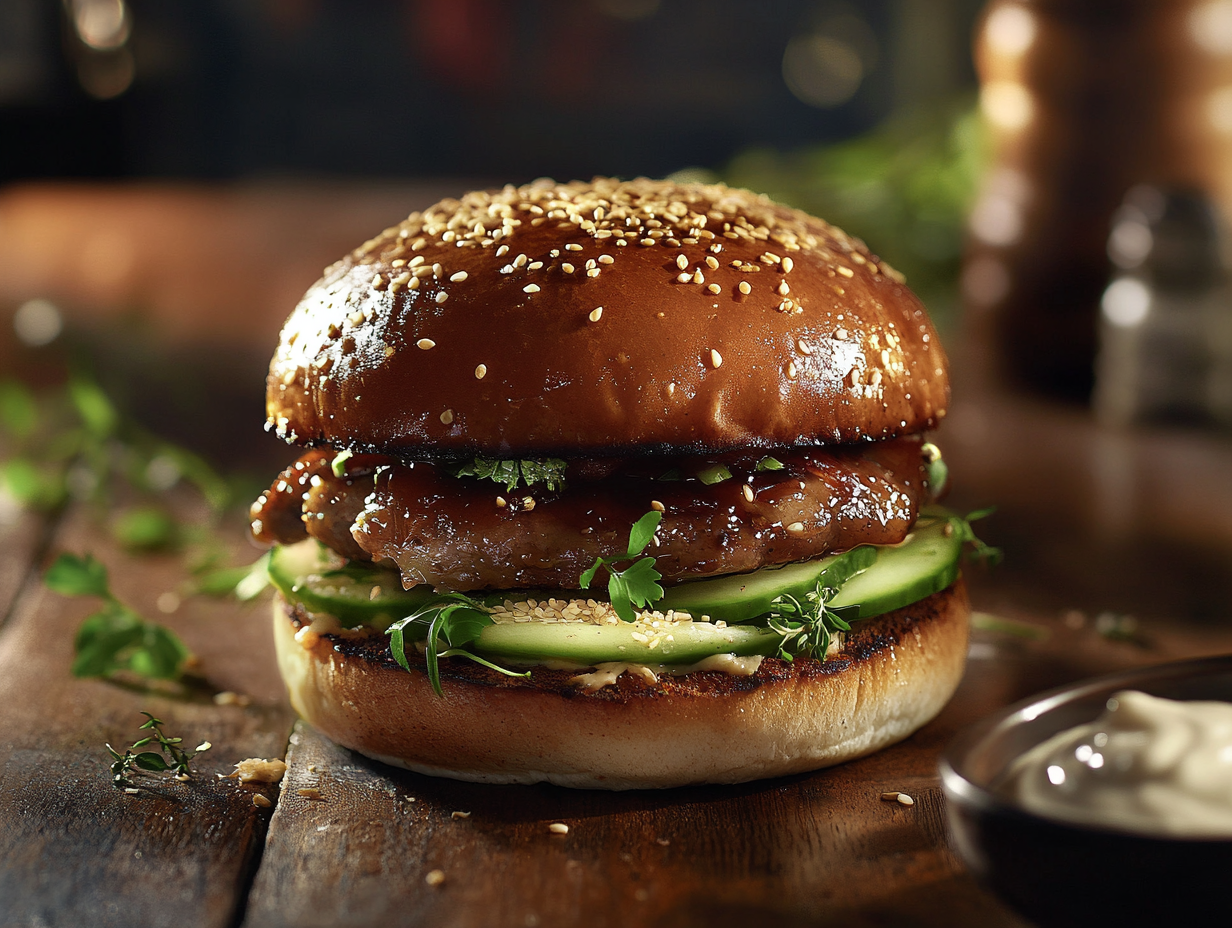 To balance the richness of the duck confit, the burger features a light cucumber slaw made with julienned cucumbers, scallions, rice vinegar, and a sprinkle of sesame seeds. The fresh, slightly tangy slaw cuts through the decadence of the duck, providing a needed contrast that keeps each bite refreshing. This nod to Asian-style pickles adds an element of crunch while enhancing the fusion theme.