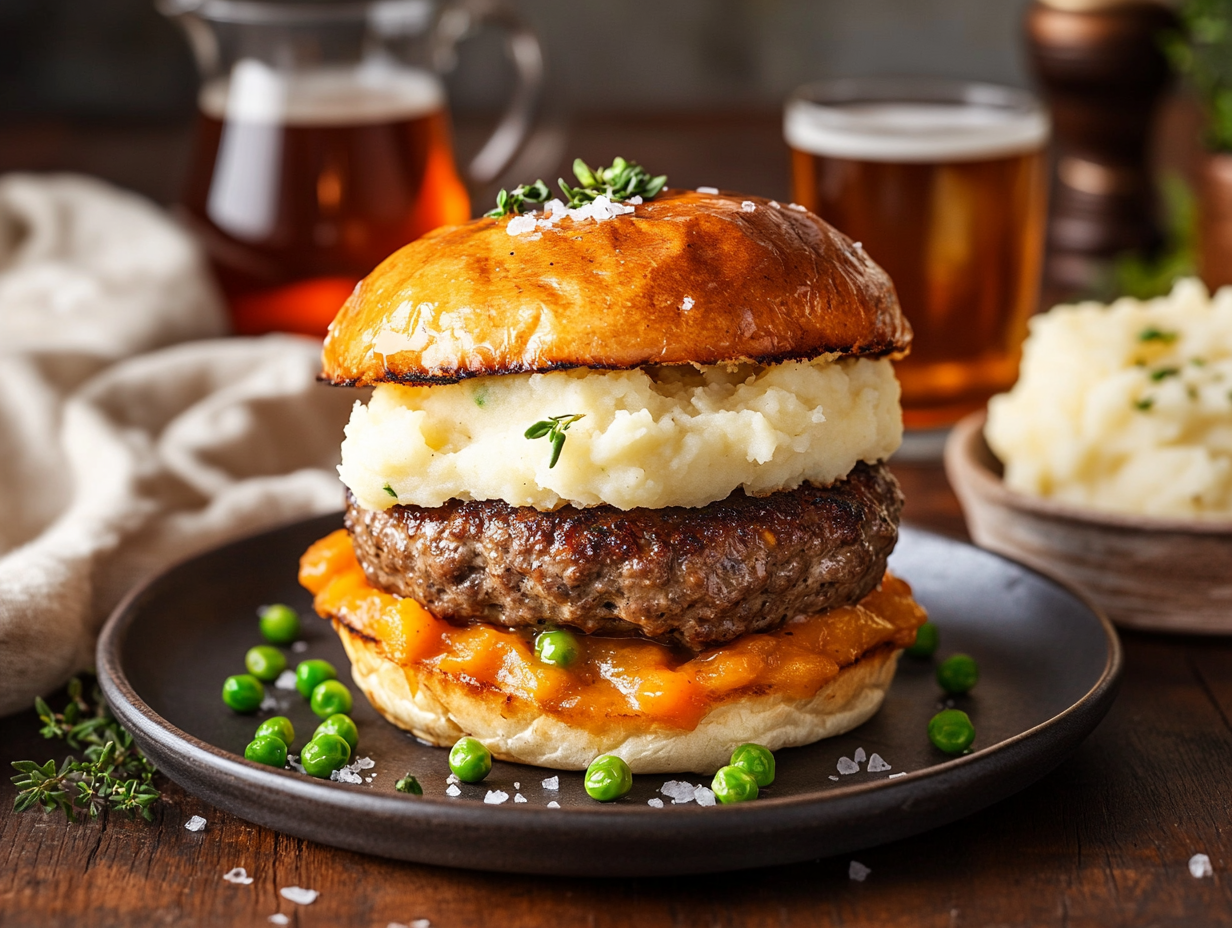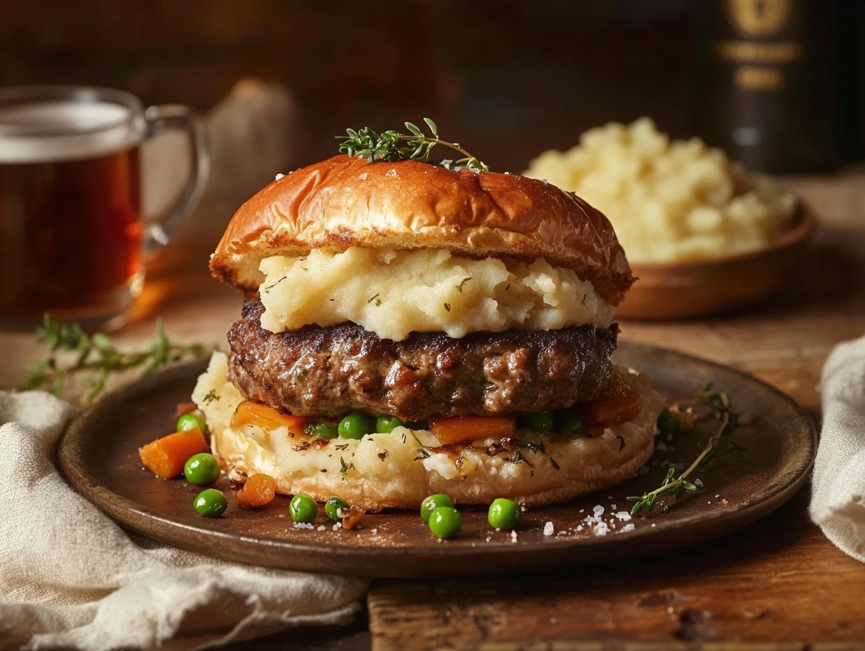 The “British Shepherd’s Pie Burger” is a delightful fusion dish that transforms the timeless comfort of “British shepherd’s pie” into a handheld burger. This innovative take on two beloved classics—”British comfort food and the American burger”—delivers rich textures, bold flavors, and a hearty experience perfect for any food lover.