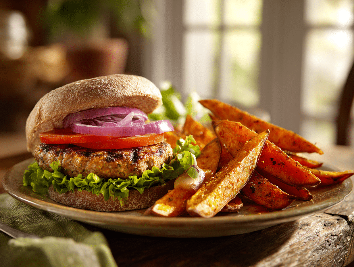 So whether you’re trying to eat more mindfully, reduce your red meat intake, or simply explore new twists on classic dishes, the Turkey Burger with Roasted Sweet Potato Wedges is sure to become a favorite in your kitchen. It’s comfort food, reimagined—and redefined.
