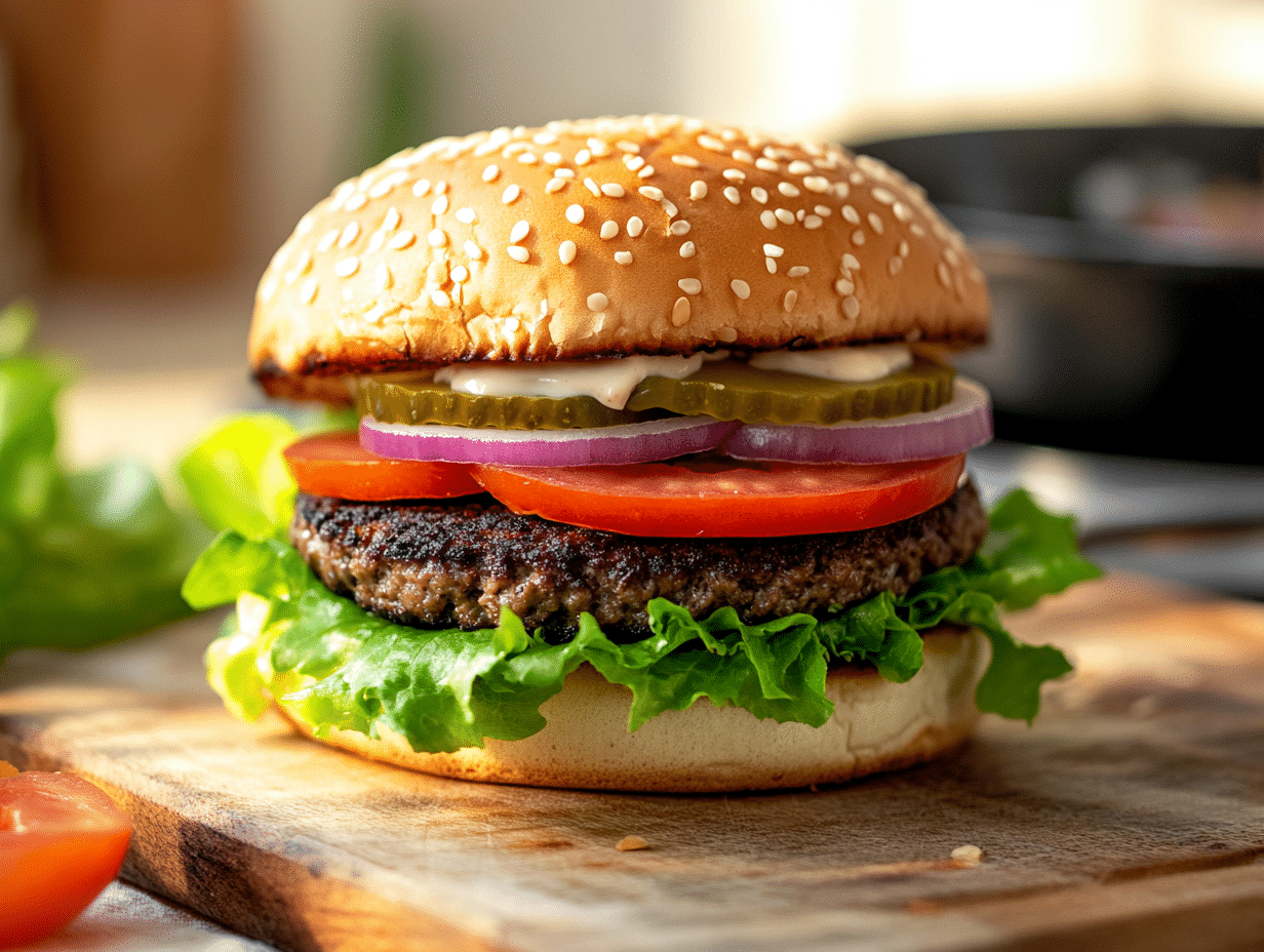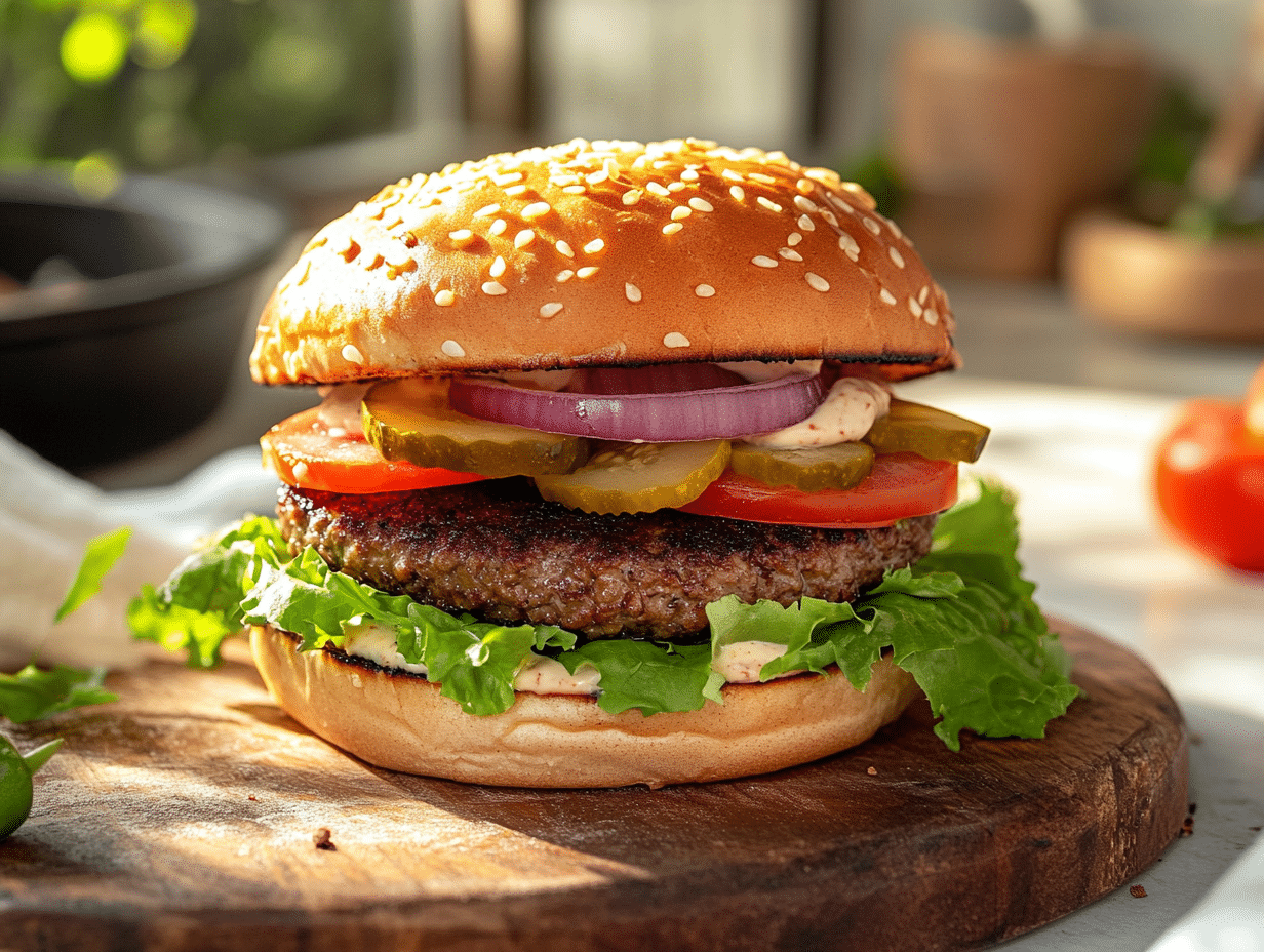 The sesame seed bun serves as the burger’s welcoming vessel—soft yet strong enough to hold in the juicy patty and crisp veggies. Lightly toasting the bun is more than just a textural touch; it adds warmth and structure, preventing sogginess and enhancing the toasted, nutty flavor of the sesame seeds. It’s these thoughtful details that elevate a burger from good to genuinely memorable.
