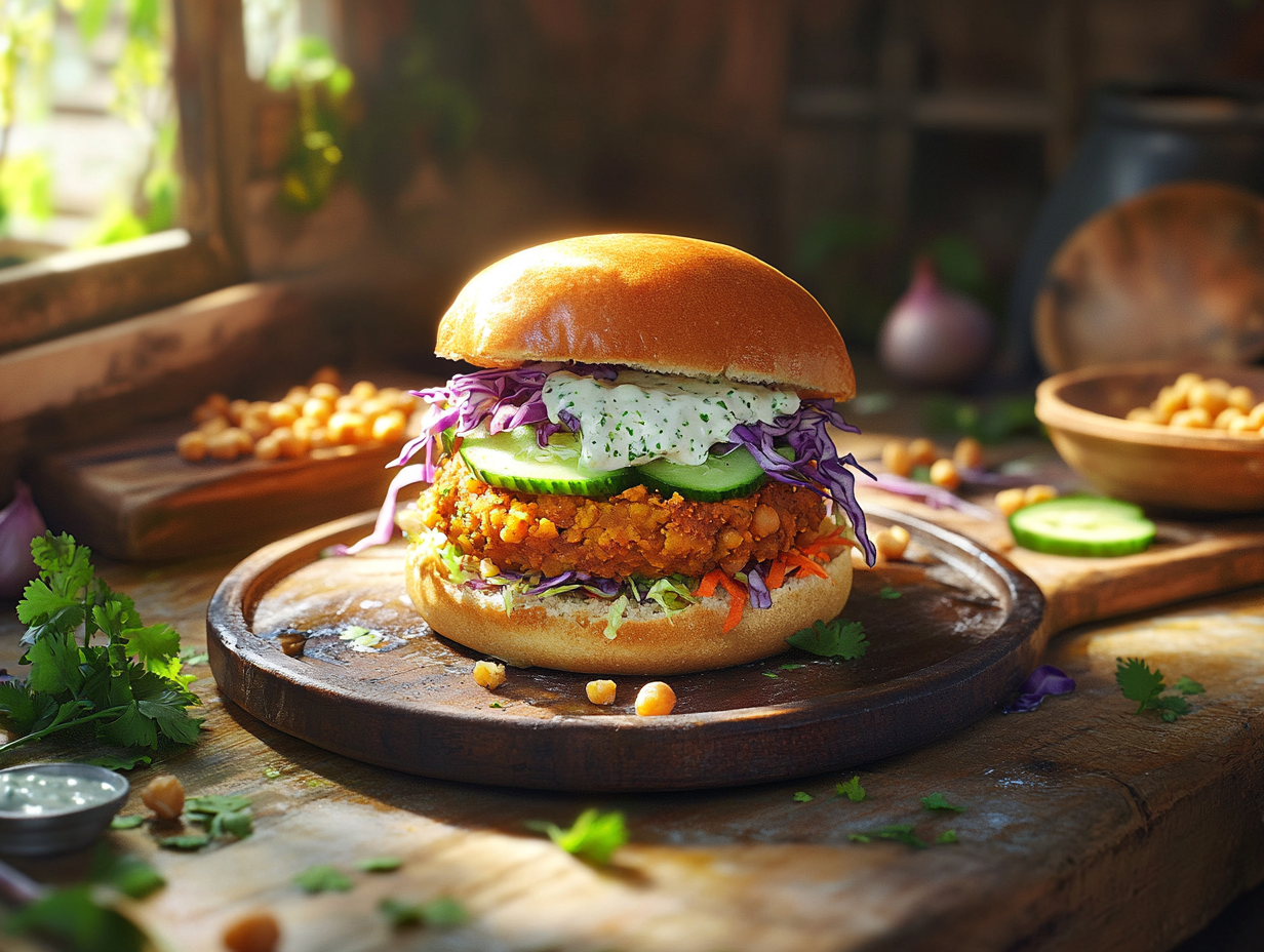 Chole, or chickpeas, are a staple in Indian cuisine and have been enjoyed for centuries. Chickpeas are prized not only for their nutritional value—they’re high in protein, fiber, and essential nutrients—but also for their adaptability in dishes ranging from curries to snacks. The inspiration for this burger emerges from the desire to make a hearty, plant-based meal that’s as satisfying as a traditional meat burger, yet rich in Indian spices and flavors. By using garam masala, cumin, and coriander, the recipe captures the warmth and complexity of Indian cooking. These spices don’t just add flavor but also carry health benefits, aligning with the intrinsic connection in Indian food between taste and wellness.