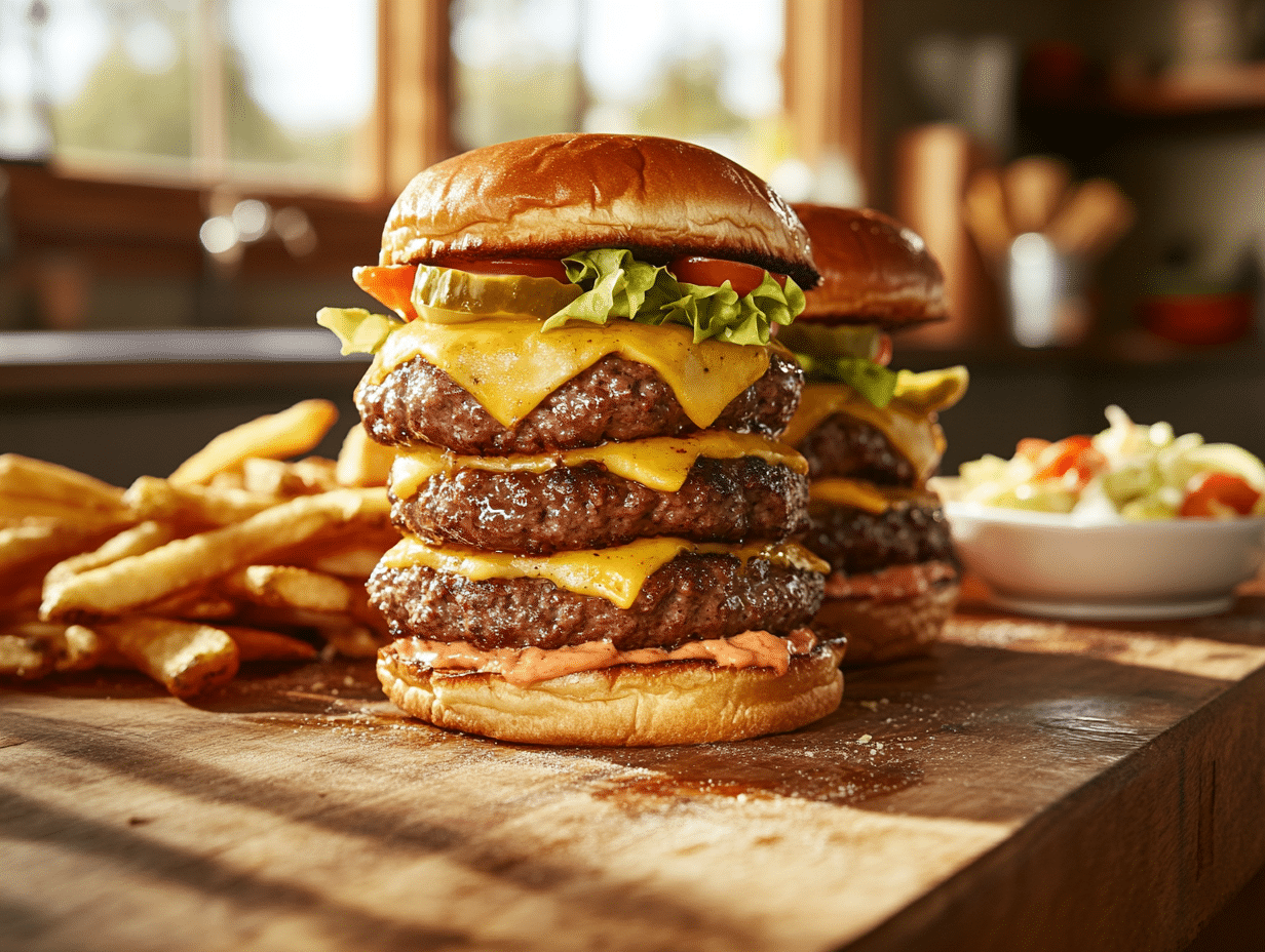 Inspired by the American fast-food classic, Wendy’s Dave’s Single, this gourmet recipe elevates the iconic burger into a refined homemade experience. With a juicy ground beef patty, melty American cheese, crisp lettuce, pickles, and tangy mayo-ketchup sauce all tucked in a toasted brioche bun, this is nostalgia redefined. It’s perfect for burger aficionados who want that signature flavor with a fresh, homemade flair.